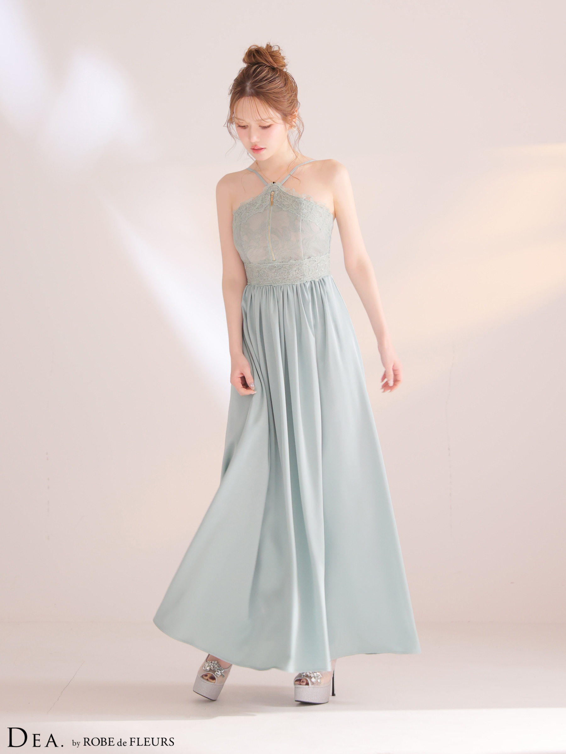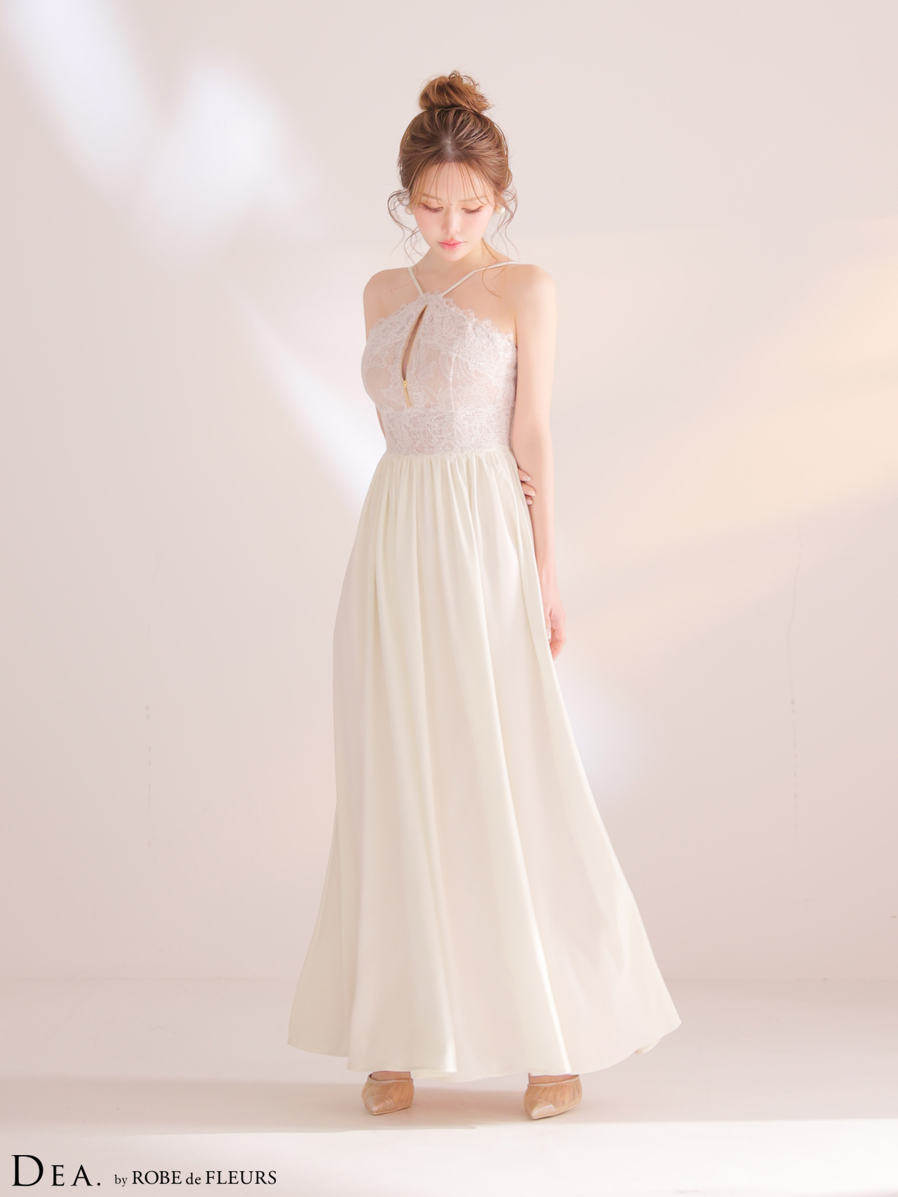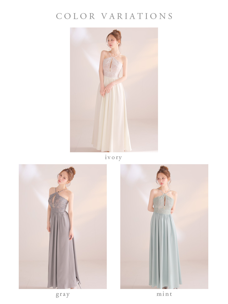 XSサイズあり【DEA./ディア】ホルター/ レース/ ギャザー/ フレア/ ワンピース/ ミディアムドレス/ キャバドレス[OF08] [DE4657-IV-S260330]