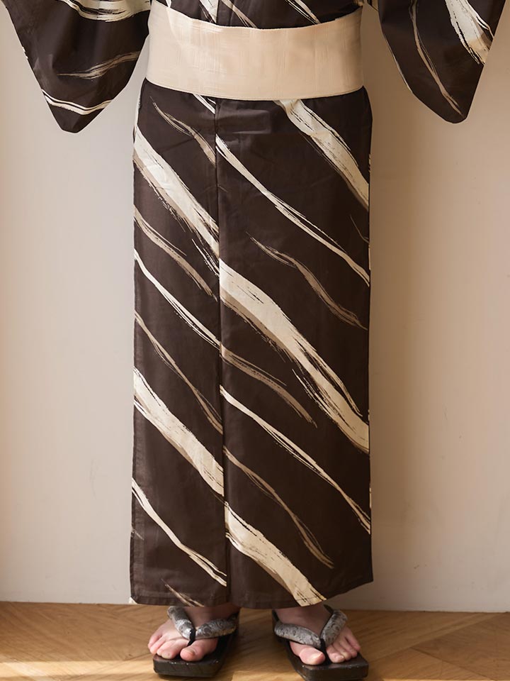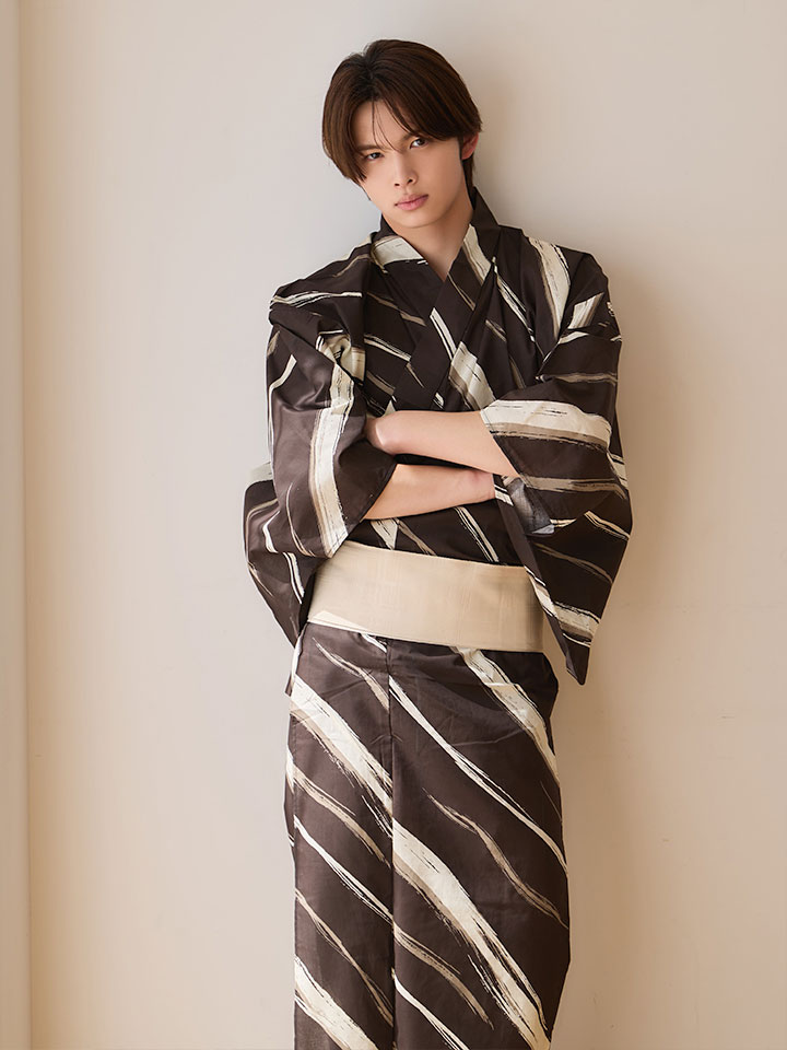 【即日発送】【メンズ浴衣】ブラウン地×ベージュライン浴衣【浴衣3点セット 浴衣/帯/下駄】[OF04] [MSY-9081-ok-BR-26IH-260404]