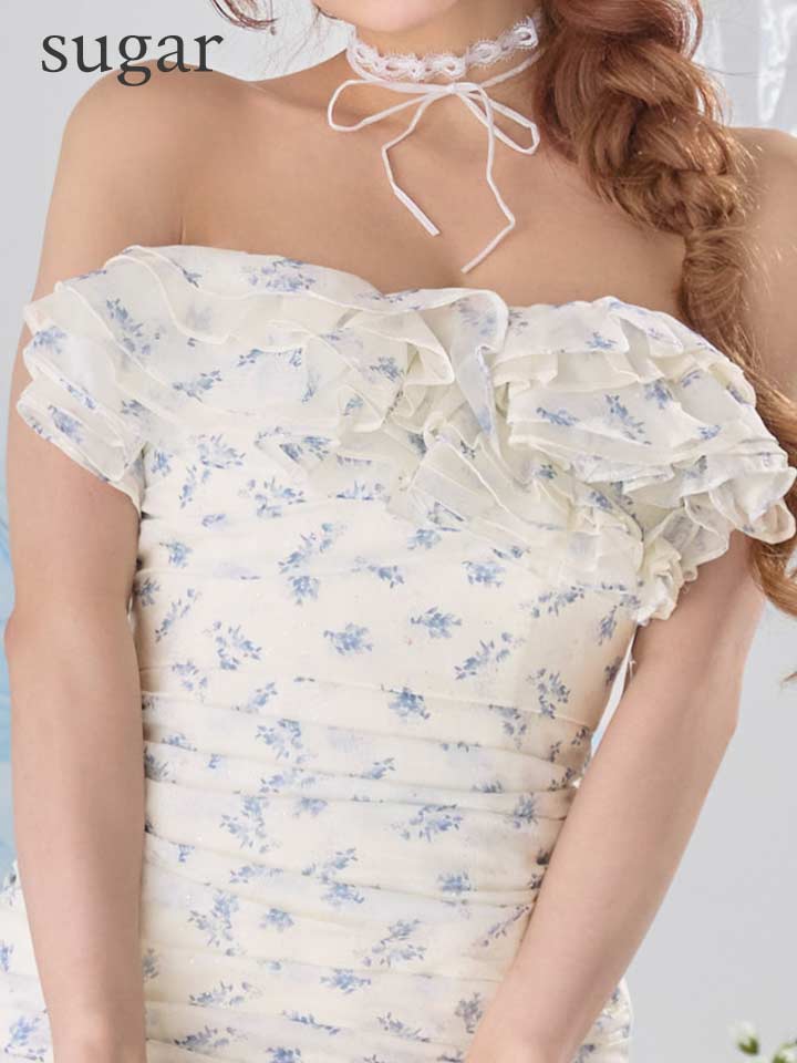 #キャバクラ #キャバ嬢 #キャバクラドレス #花柄 #シフォン #フリル #ワンショル #ギャザー