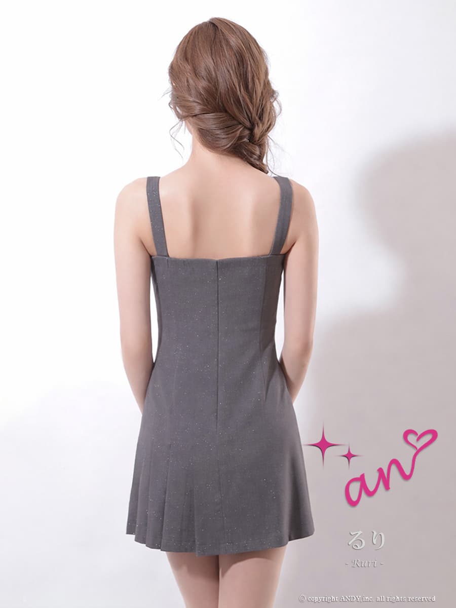 XSサイズあり【an/アン】ショルダーバックル/ ラメ/ アシメデザイン/ プリーツ/ バストジップ/ キャミソール/ フレア/ ストレッチ/ ミニドレス/ キャバドレス[OF05] [AOC4095-Indigo-2604]