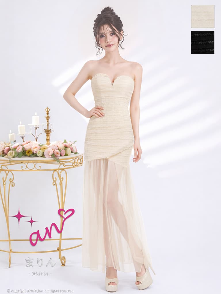 XSサイズあり【an/アン】立体レース/ ベアトップ/ バストジップ/ シースルー/ オーガンジー/ フレア/ ワンピース/ ロングドレス/ キャバドレス[OF05] [AOC4101-IV-2604]