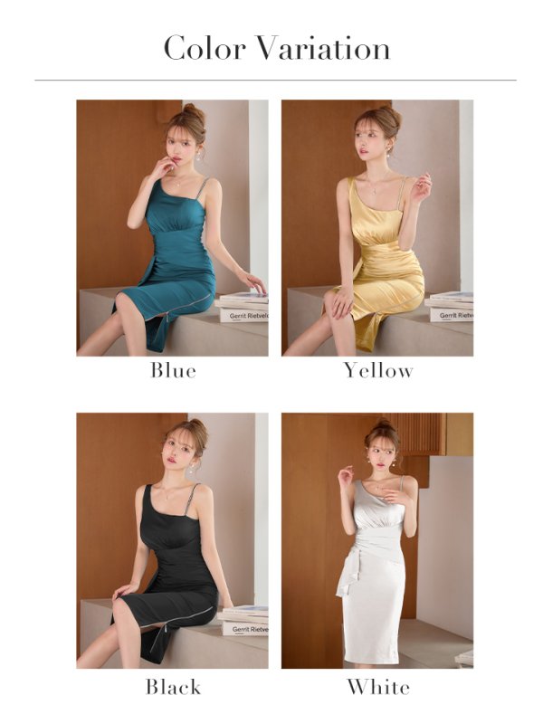 ウエスト周りの立体的なギャザーがメリハリのあるシルエットを作り、女性らしい曲線美を強調。