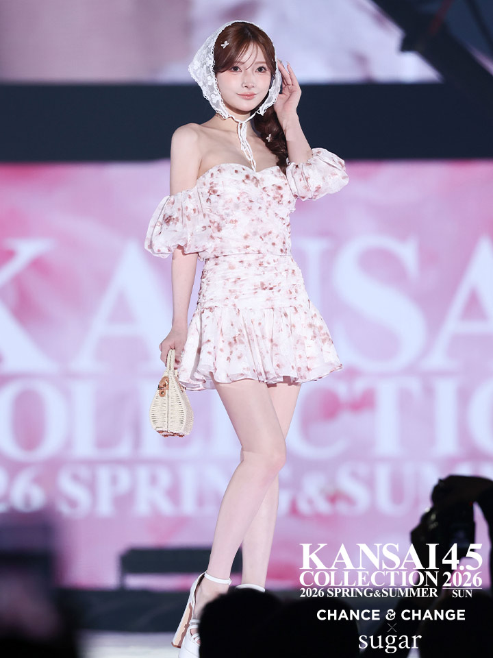 【まみ/関西コレクション着用】XSサイズあり【ROBE de FLEURS/ローブドフルール】オフショル/ フラワー/ シフォン/ ハートカット/ フレア/ キャバドレス[OF08] [FM4345-OR-S260405CC]