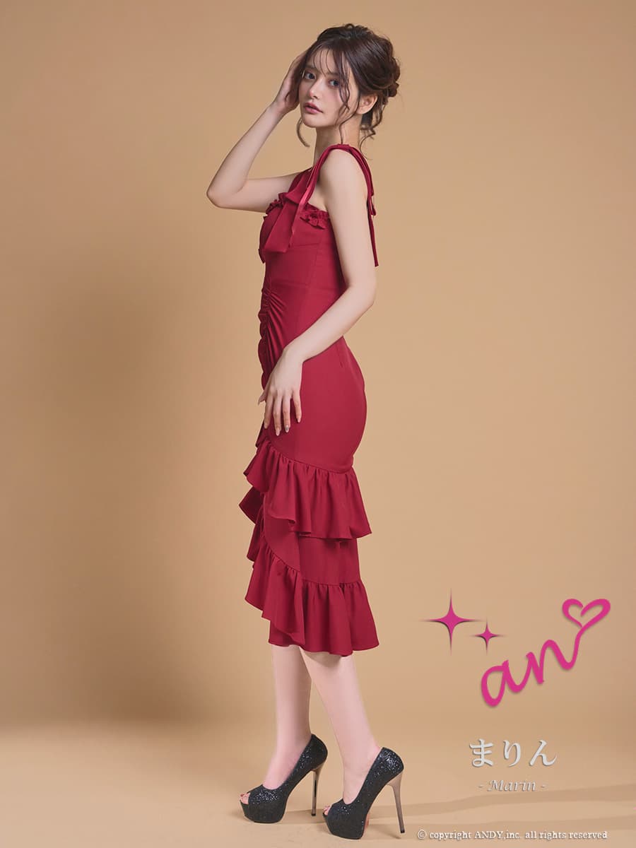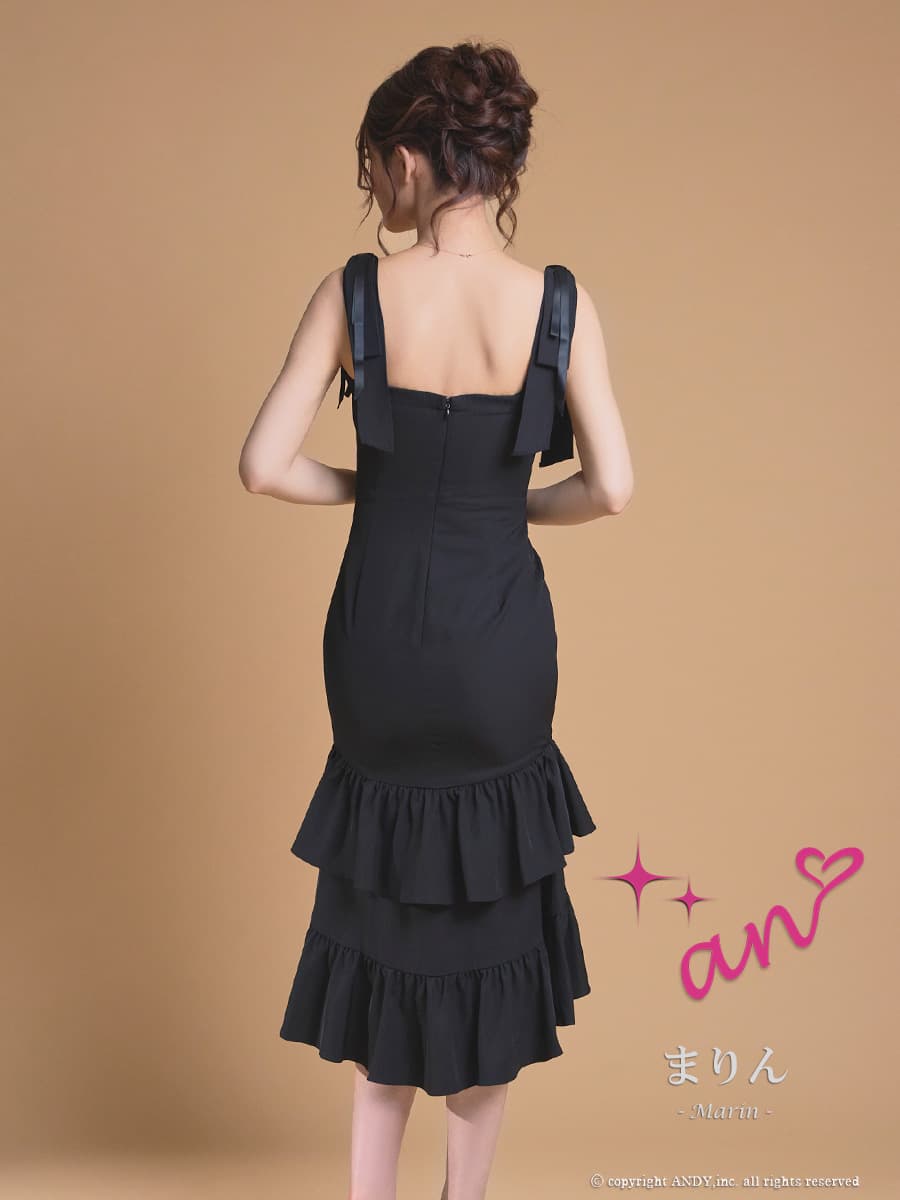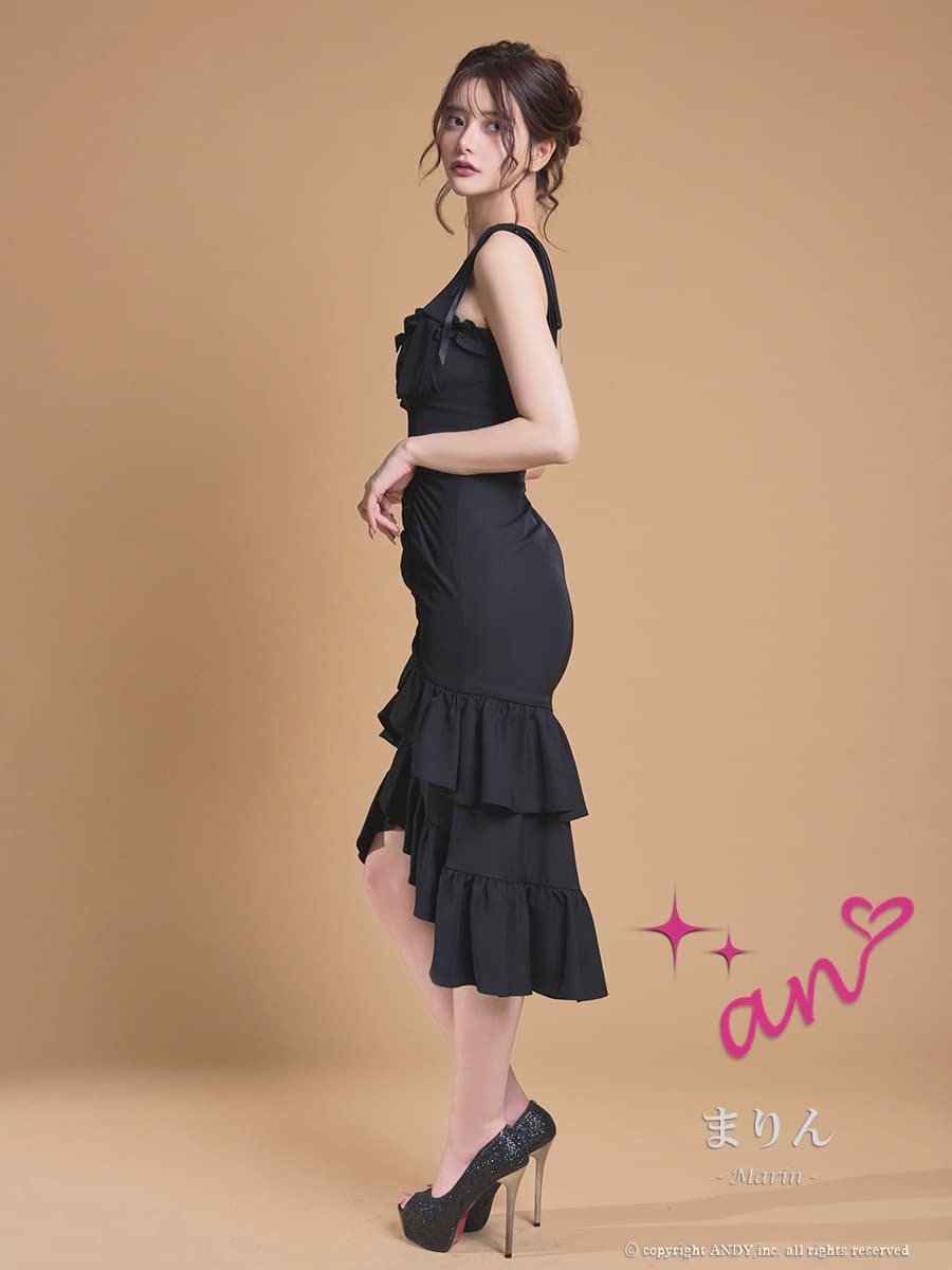 XSサイズあり【an /アン】マーメイド/ ショルダーリボン/ バストジップ/ 2段フリル/ ティアード/ノースリーブ/ アシンメトリー/ ミディアムドレス/ キャバドレス[OF05] [AOC4117-WR-2604]