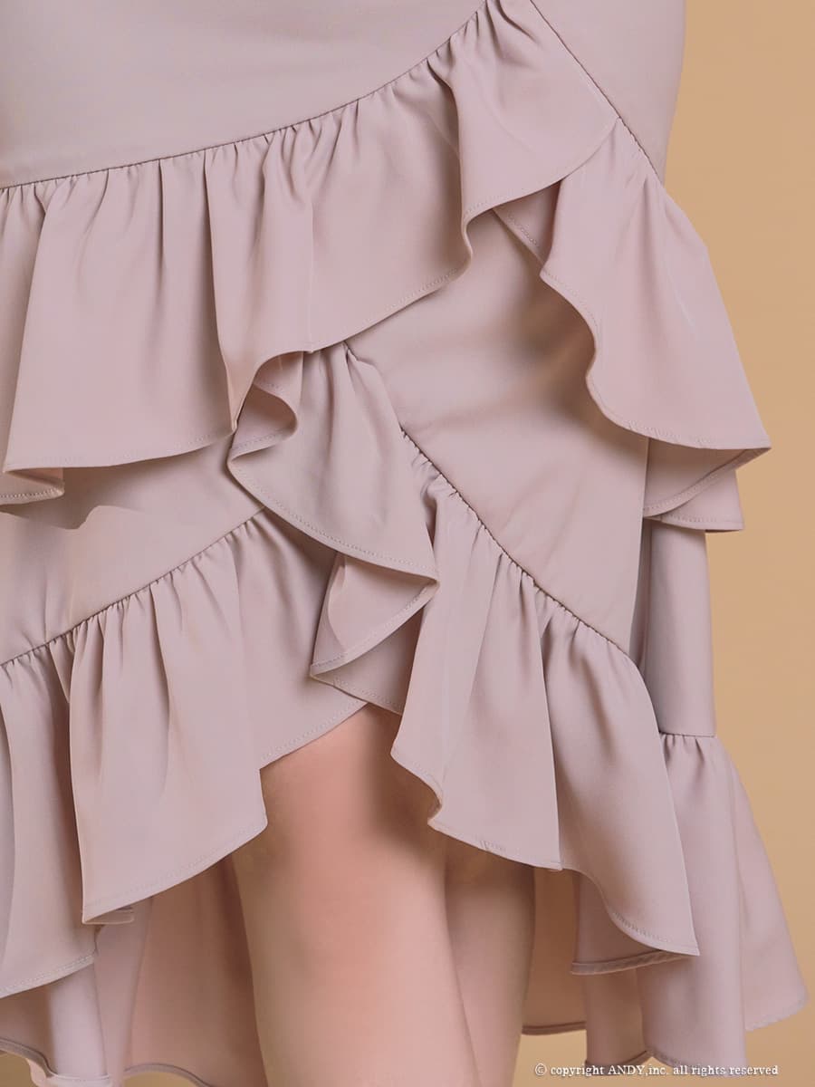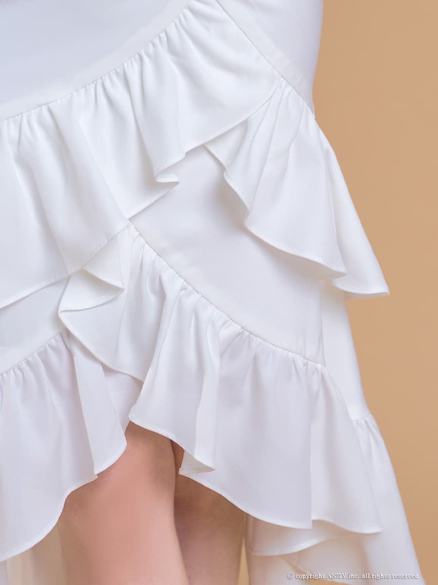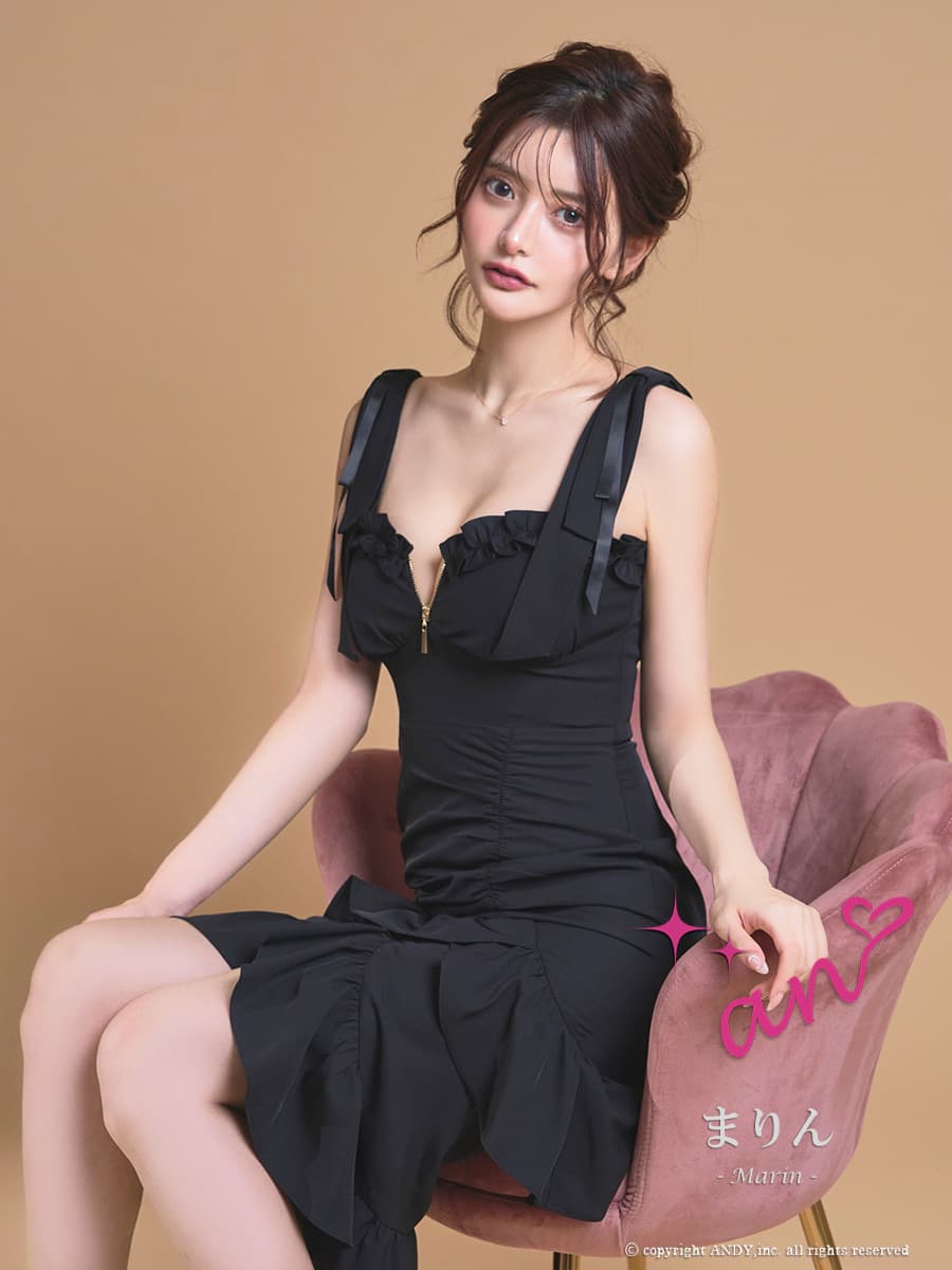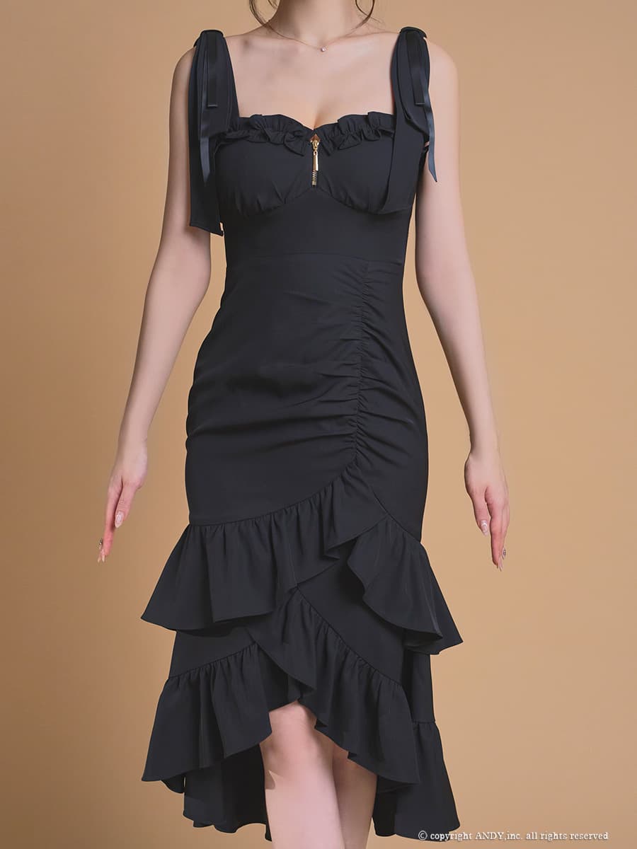 XSサイズあり【an /アン】マーメイド/ ショルダーリボン/ バストジップ/ 2段フリル/ ティアード/ノースリーブ/ アシンメトリー/ ミディアムドレス/ キャバドレス[OF05] [AOC4117-WR-2604]