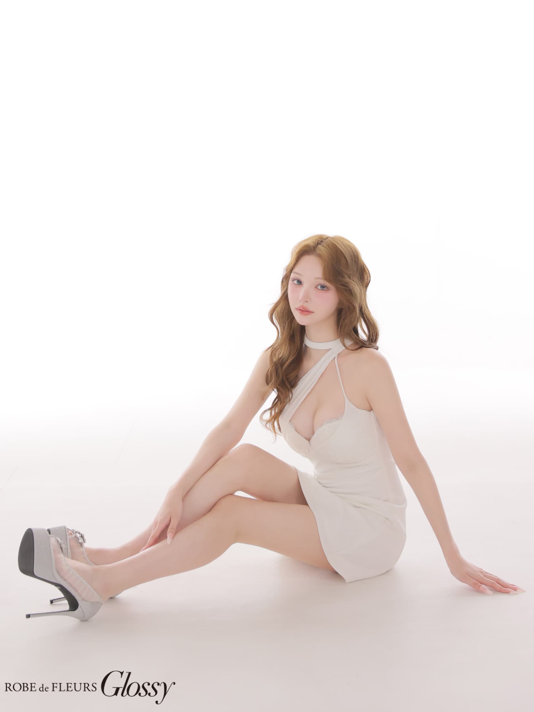 【予約商品/4月中旬発送予定】XSサイズあり【Glossy/グロッシー】ラメニット/ レース/ ホルター/ ミニドレス/ キャバドレス[OF08] [GL4186-W-2604]