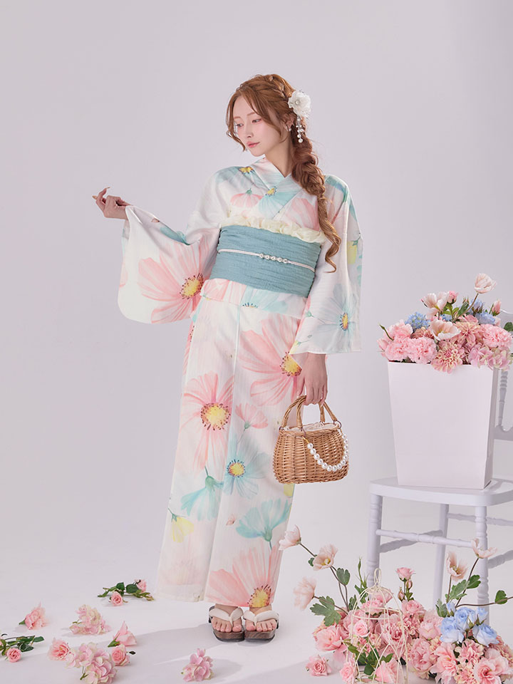 送料無料!MIXフローラ浴衣【浴衣3点セット 浴衣/帯/下駄】[OF04]【予約 / 4月下旬発送予定】 [Y-9431-nz-dzm-P-F-26MC-260405-1]