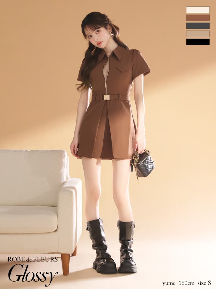 XS-Lサイズあり【Glossy/グロッシー】シャツカラー/ ウエストベルト/ フレア/ ミニドレス/ キャバドレス[OF08] [GL4617-IV-2604]