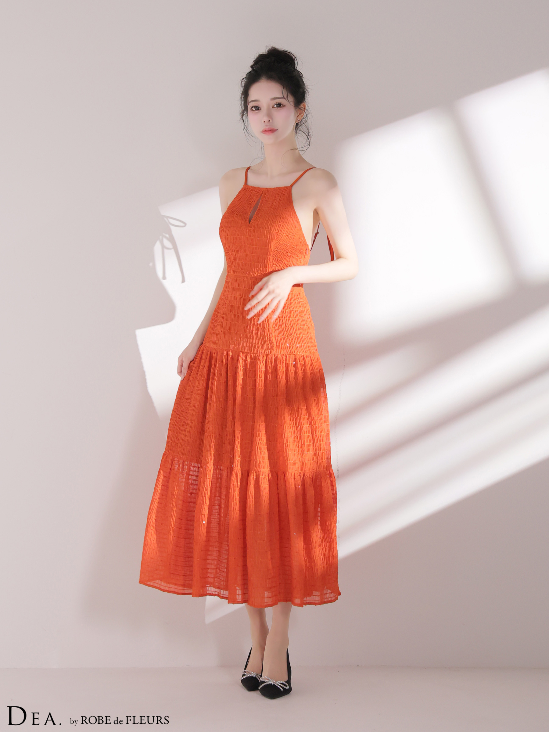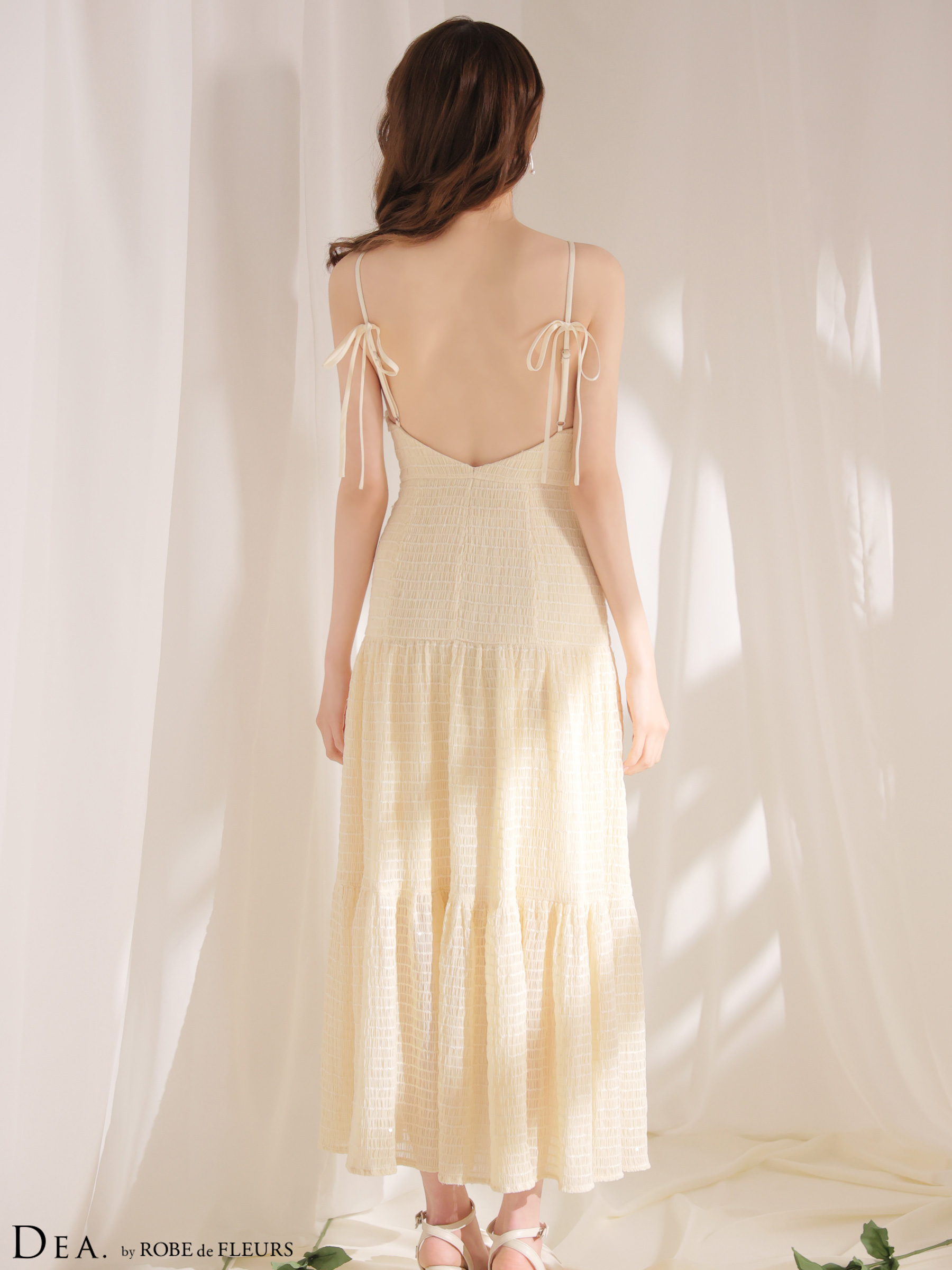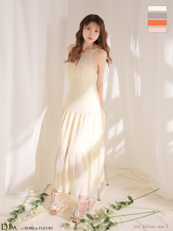 【予約商品/4月中旬発送予定】XSサイズあり【DEA./ディア】ストレッチ/ ギャザー/ シフォン/ バックオープン/ ティアード/ ワンピース/ ミディアムドレス/ キャバドレス[OF08] [DE4655-P-2604]