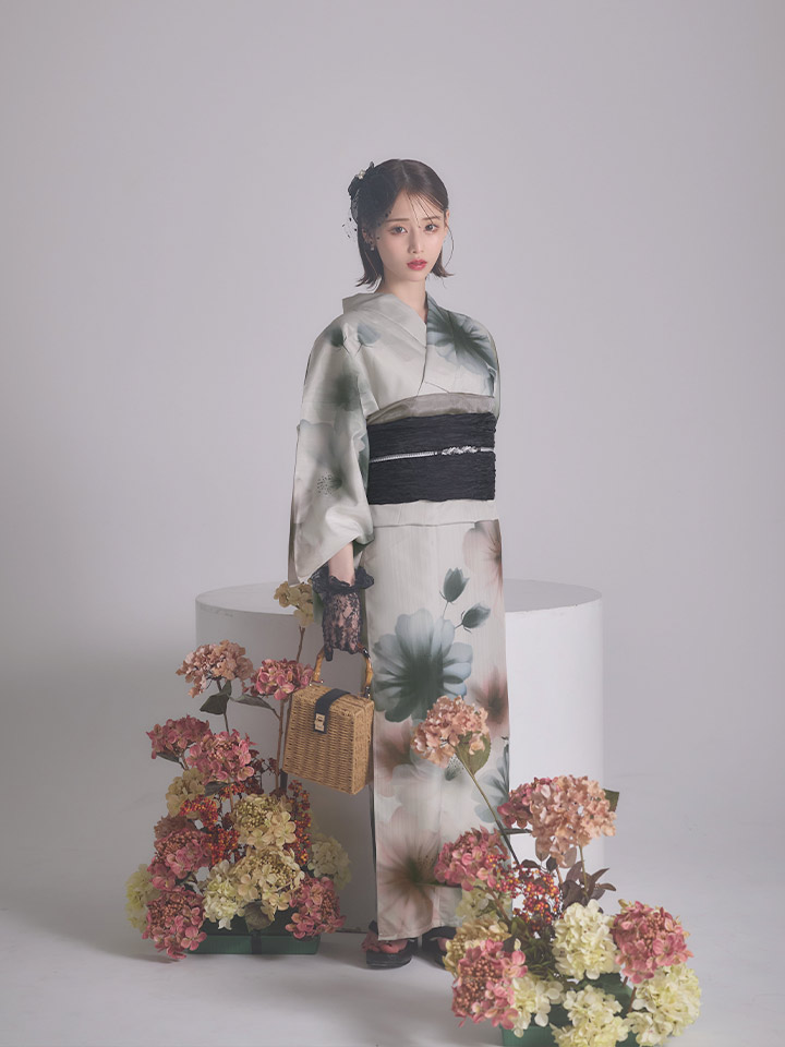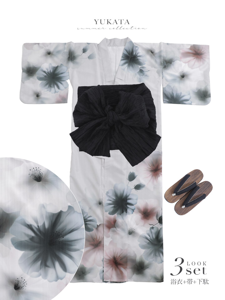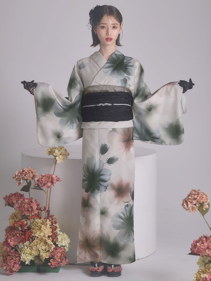 【コラボ浴衣】水彩ニュアンスグレーコスモス浴衣/MIXフローラ浴衣【浴衣3点セット 浴衣/帯/下駄】【予約 / 4月下旬発送予定】 [Y-9437-nz-dzm-GY-F-Y-9431-nz-dzm-P-F-26AMMC-260405]