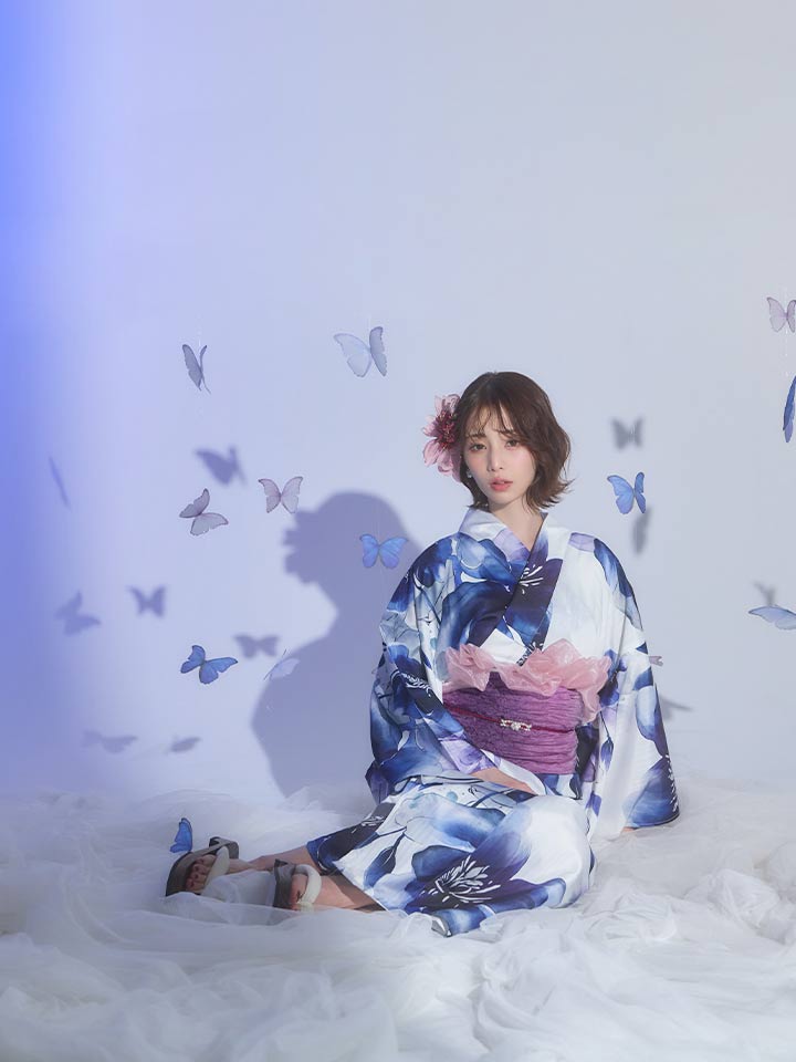 【コラボ浴衣】藍水彩フラワー浴衣/スウィート水彩ピンクコスモス浴衣【浴衣3点セット 浴衣/帯/下駄】【予約 / 4月下旬発送予定】 [Y-9435-nz-dzm-NV-F-Y-9433-nz-dzm-P-F-26AMMC-260405]