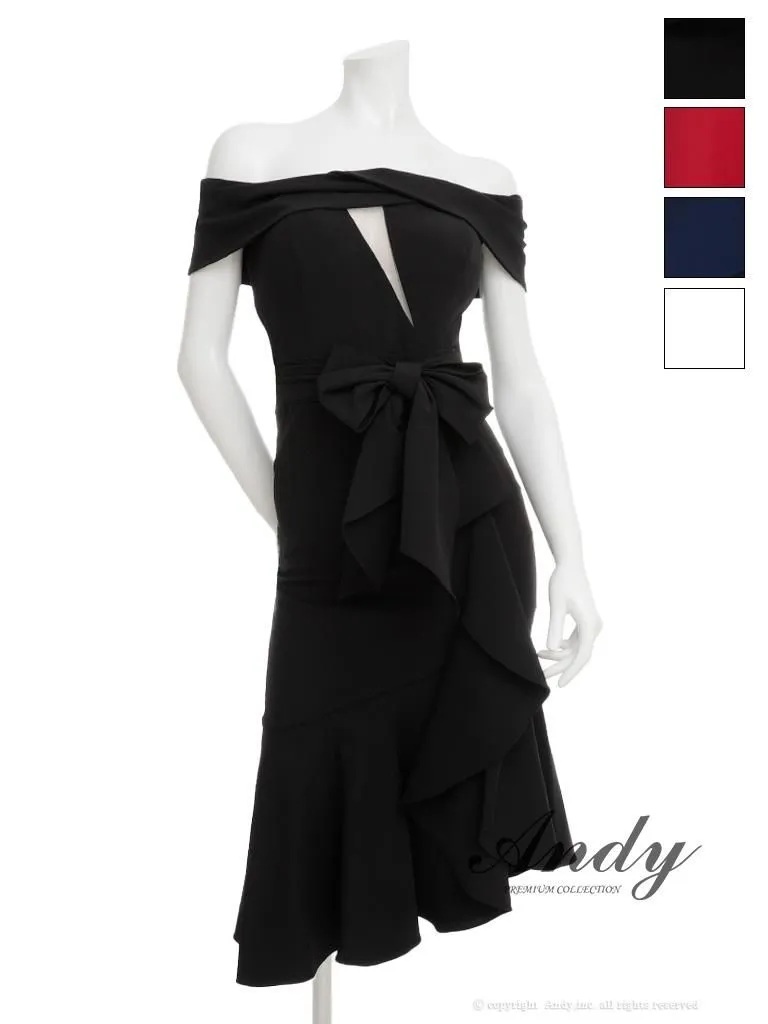 【ANDY/アンディ】オフショルダー/ バストカットアウト/ ワンカラー/ アシンメトリー/ リボン/ フリル/ マーメイド/ ロングドレス/ キャバドレス[OF05 [ON3079-NVBL-2604]