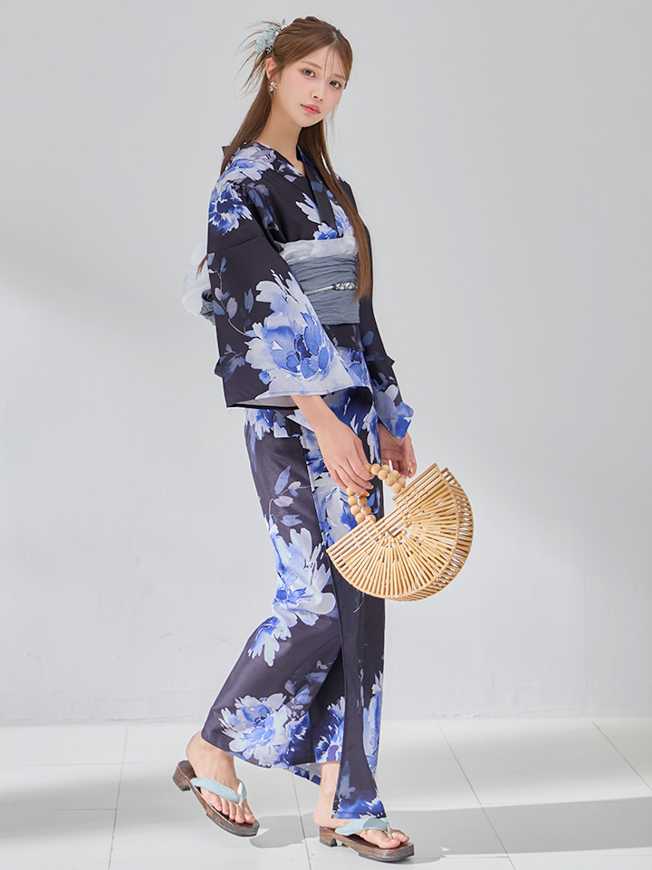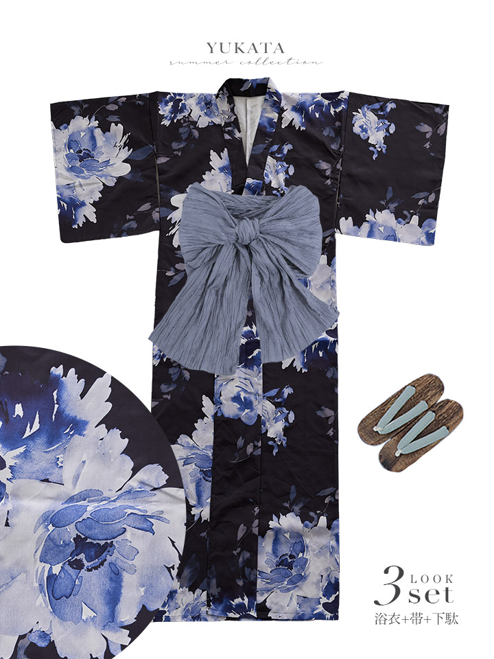 【即日発送】大人ネイビー牡丹浴衣【浴衣3点セット 浴衣/帯/下駄】[OF04] [Y-9371-sb-dzjm-NV-F-260405CC]