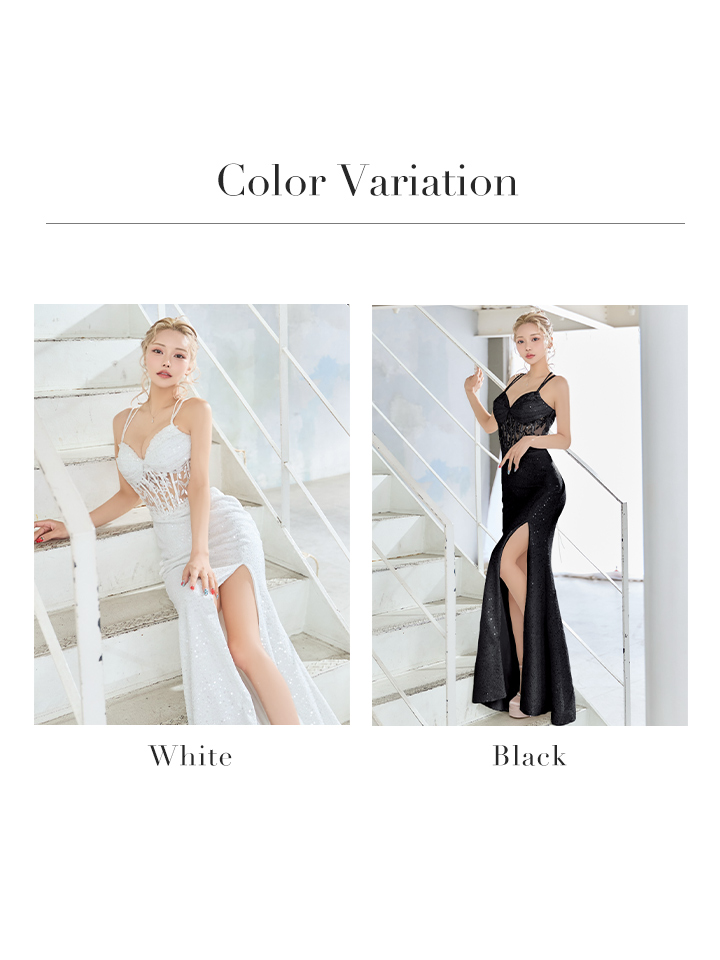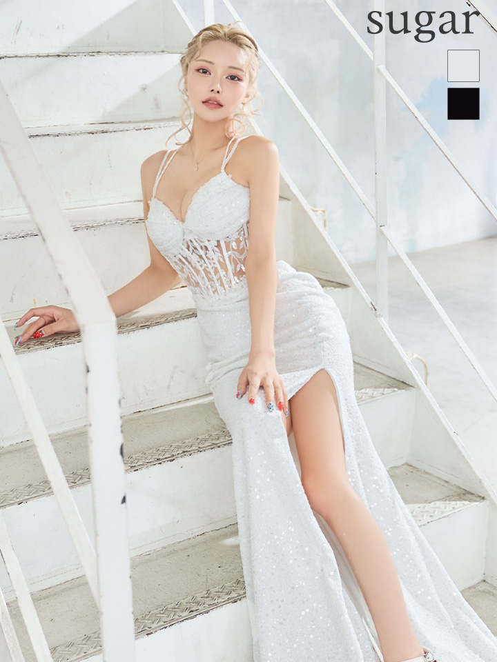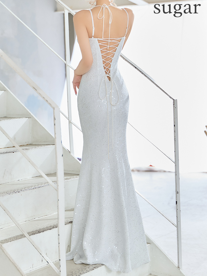 大胆なスリットとバックレースアップデザインが色気と上品さを両立させた特別感あふれる一着です