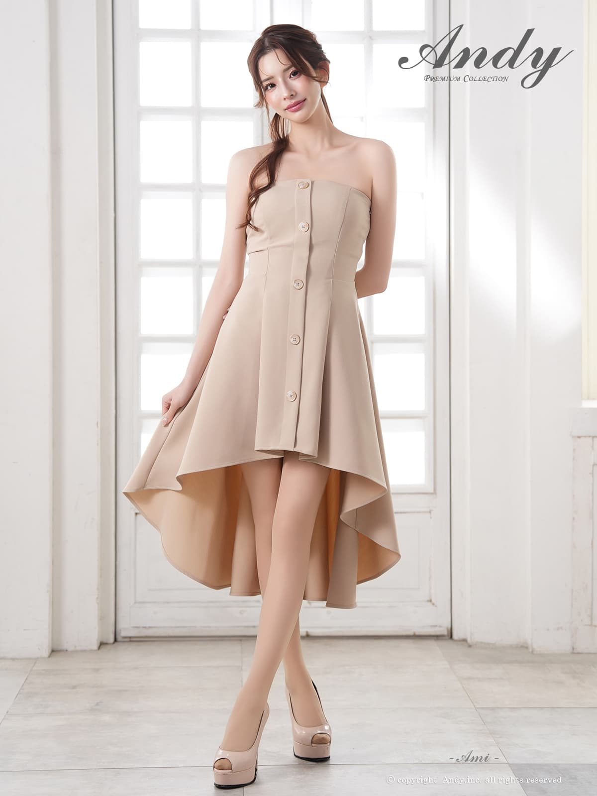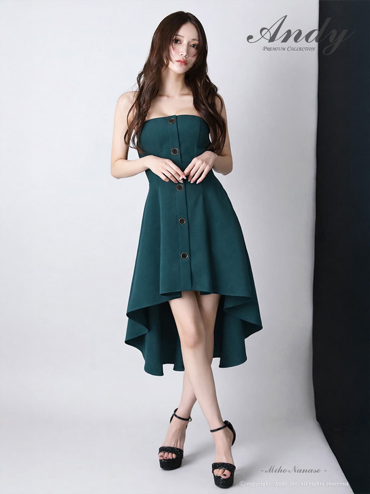 XSサイズあり【ANDY/アンディ】フロントボタン/ ワンカラー/ ベア/ テールカット/ Aライン/ ミモレ丈/ フレア/ ワンピース/ ミディアムドレス/ キャバドレス[OF05] [ON3057-MosGR-2604]