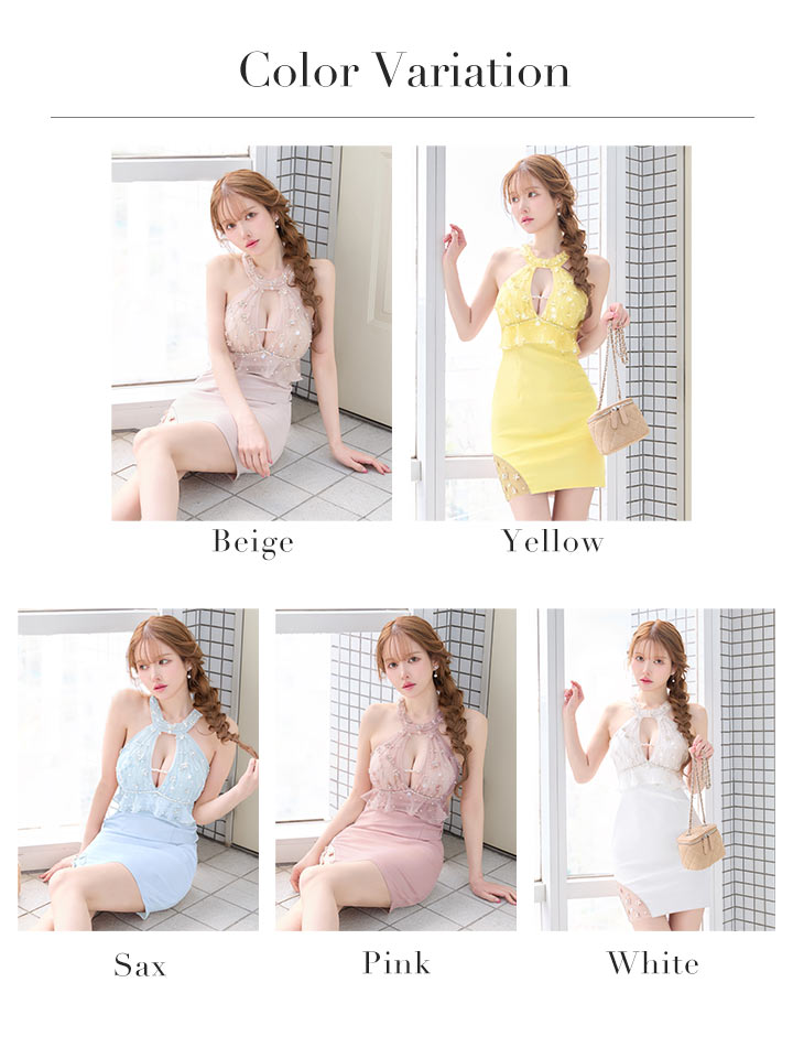 XSサイズあり【ANGEL R/エンジェルアール】ホルターネック/ バストレース/ フラワー/ フリル/ ビジュー/ タイト/ ミニドレス/ キャバドレス[OF2]【一部予約商品/4月中旬-4月下旬発送予定】 [AR25225-P-S260407]