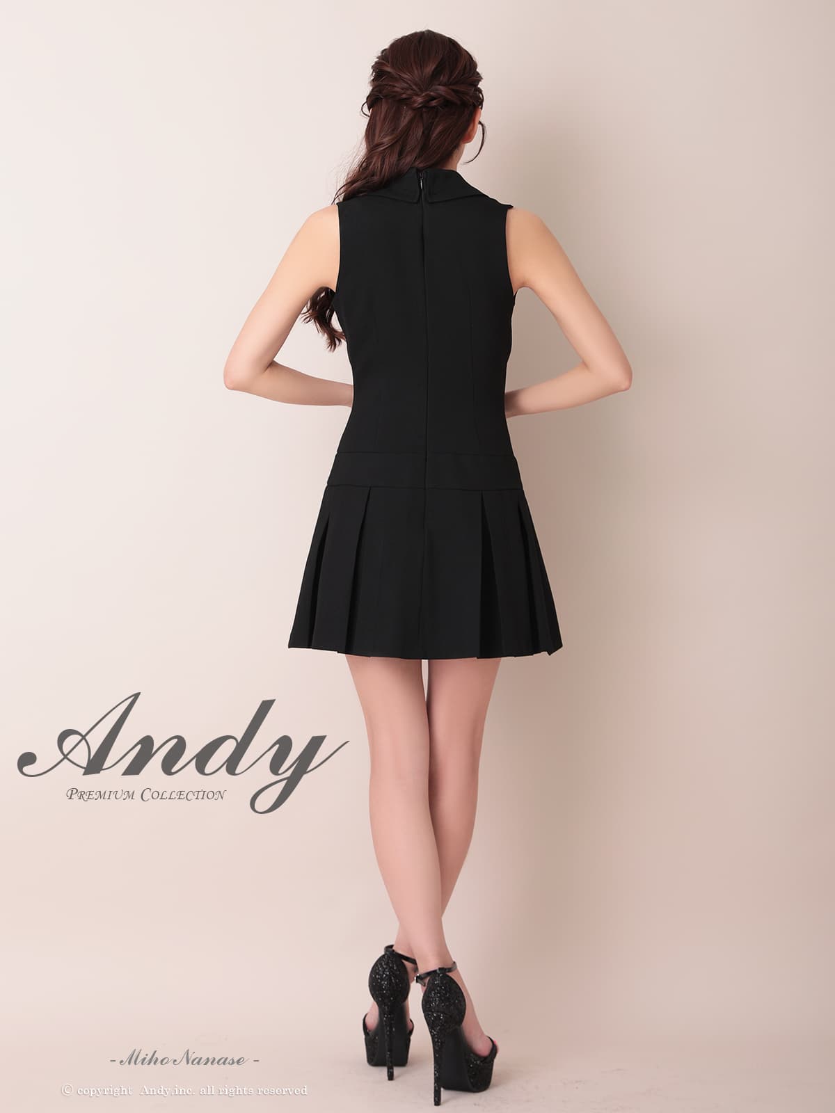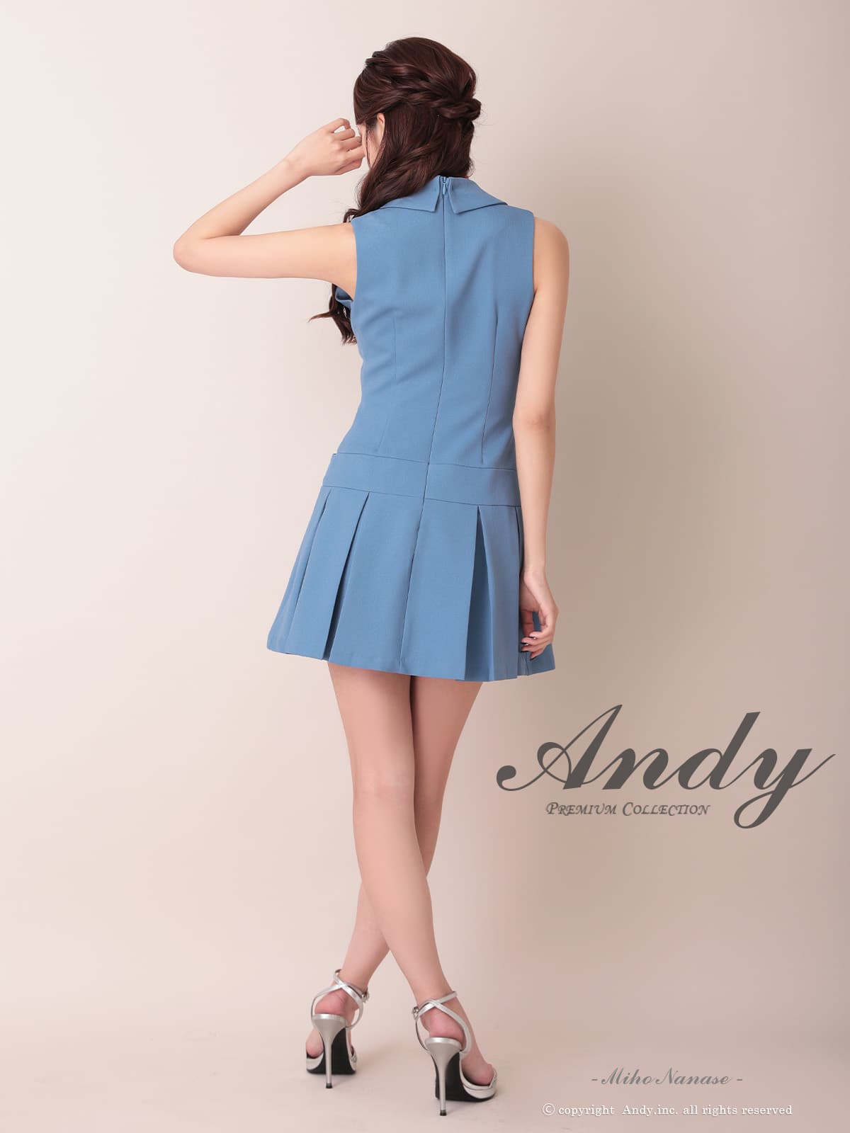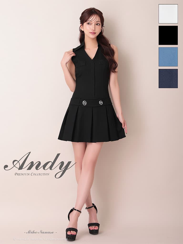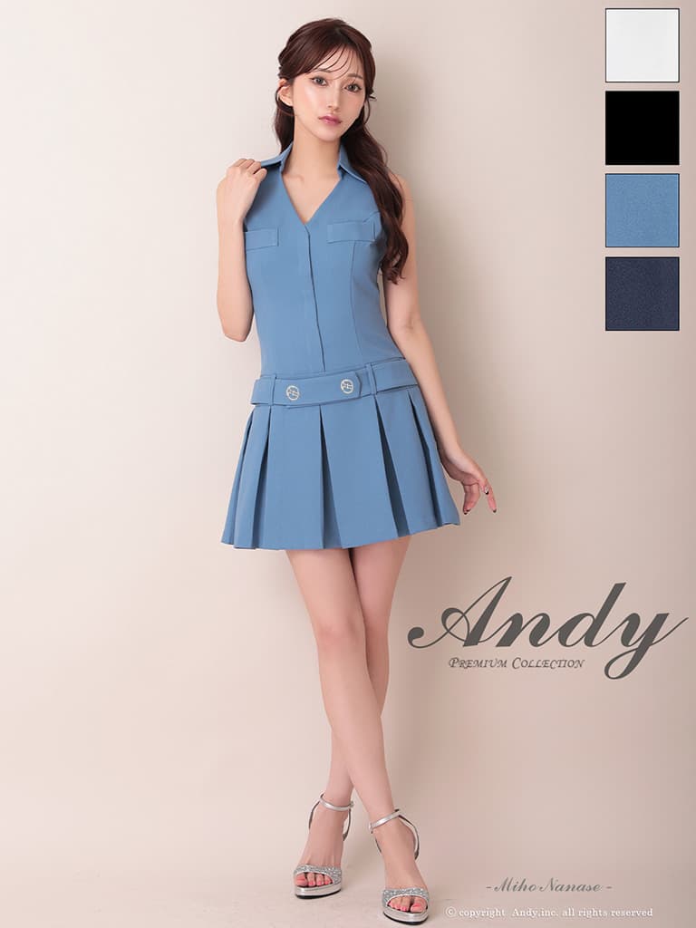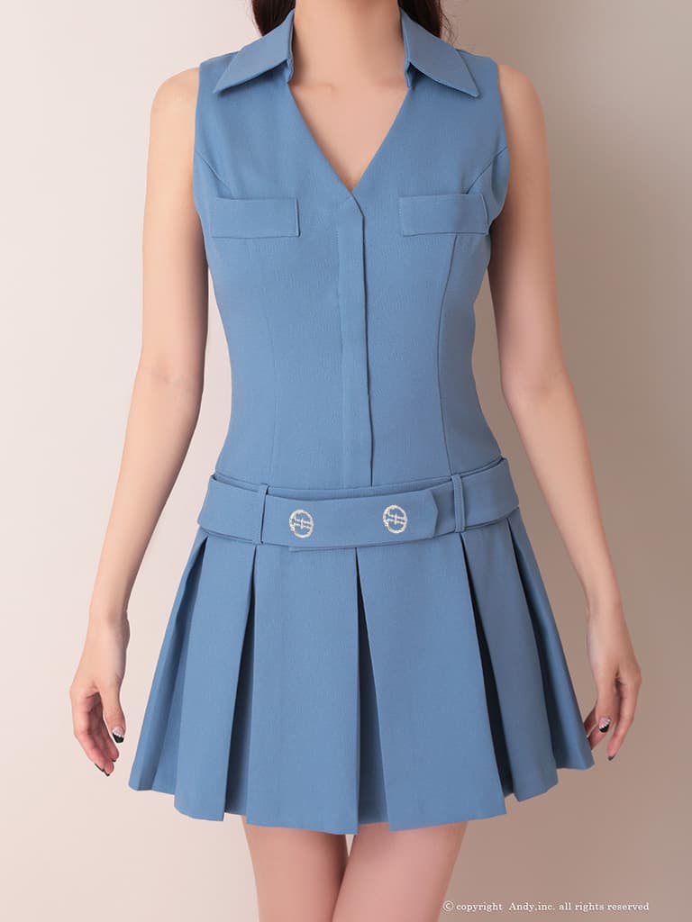 XSサイズあり【ANDY/アンディ】襟付き/ Vネック/ ノースリーブ/ ボタン/ ボックスプリーツ/ Aライン/ フレア/ ミニドレス/ キャバドレス[OF05] [ON3070-BL-2604]
