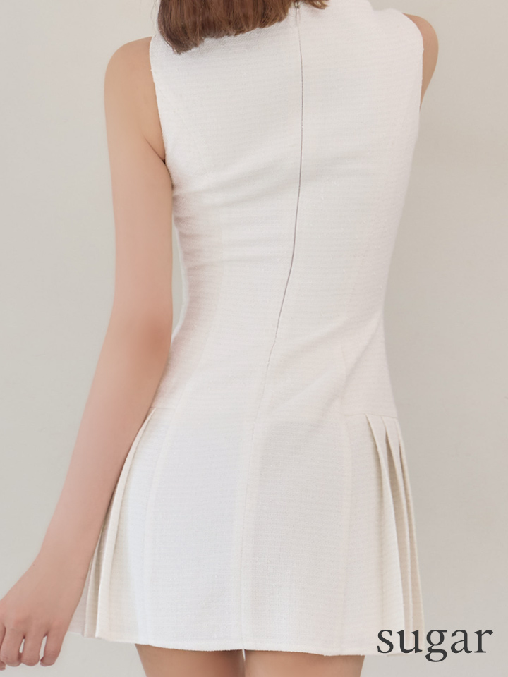 上品なきらめきを放つラメツイード素材を使用した、クラシックで洗練されたミニドレス。