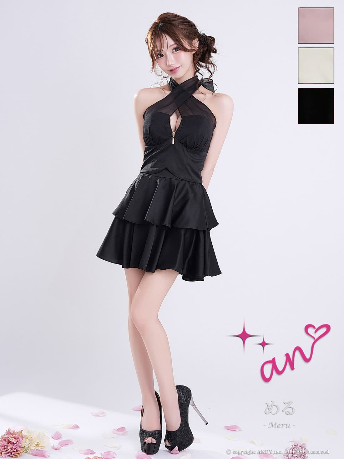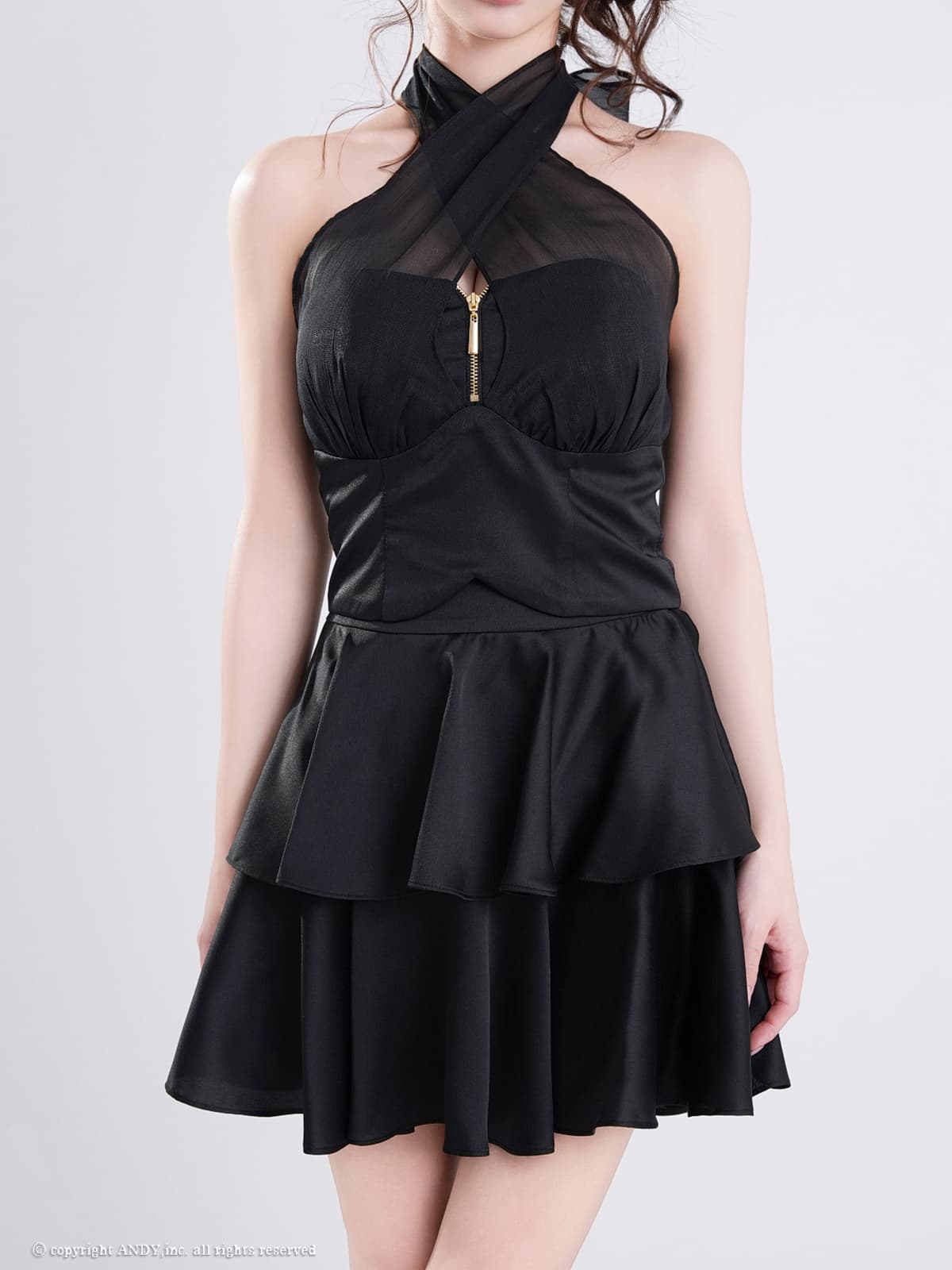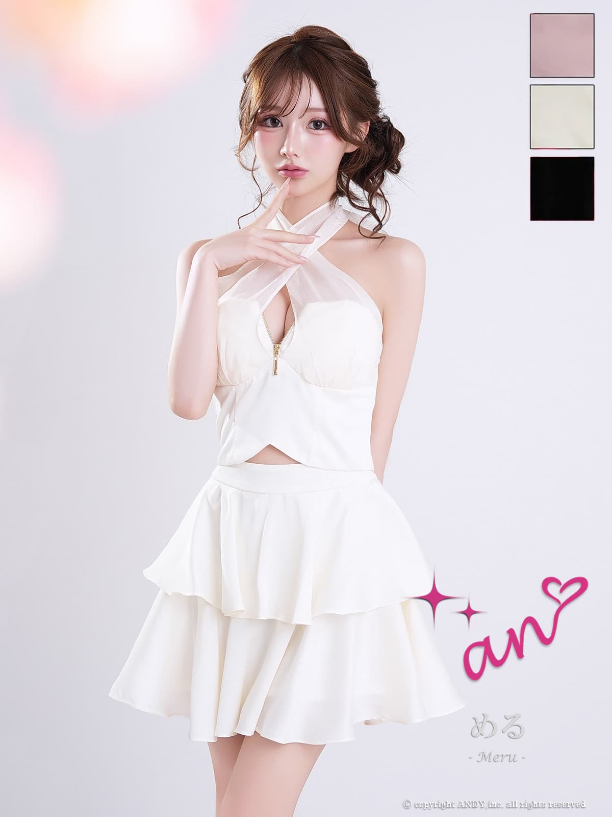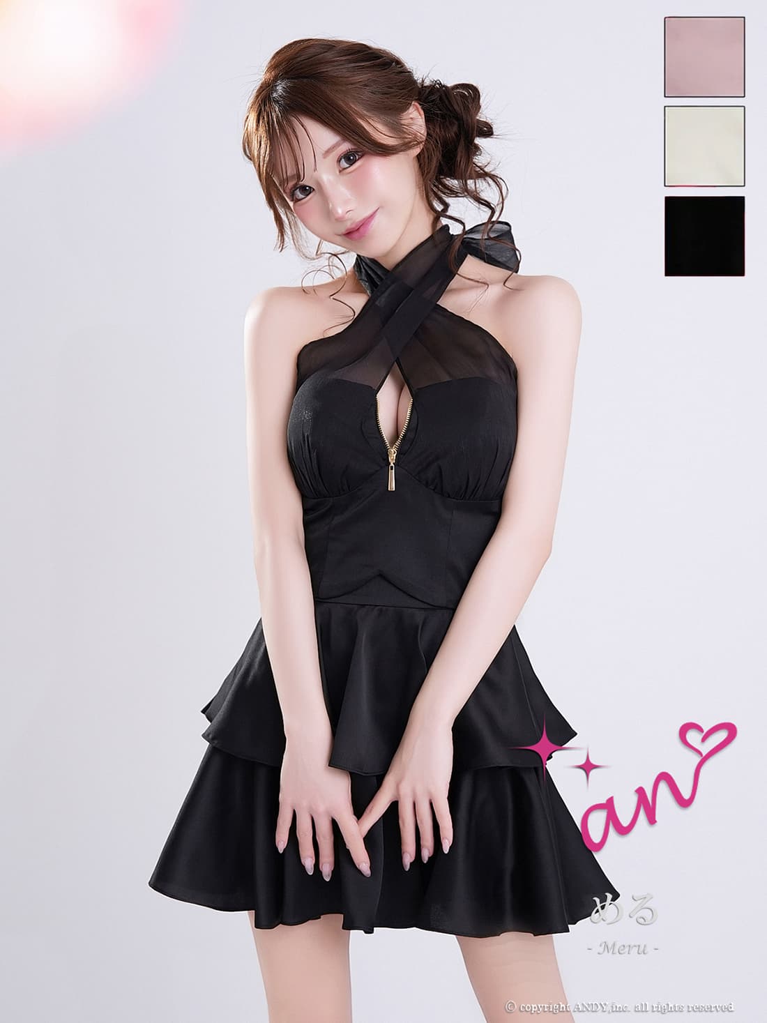XSサイズあり【an /アン】 バックリボン/ セットアップ/ バストジップ/ ベア/ ホルターネック/ フレア/ ビスチェ/ ミニドレス/ キャバドレス[OF05]【一部予約商品/6月中旬-7月上旬発送予定】 [AOC4102-P-S260408]