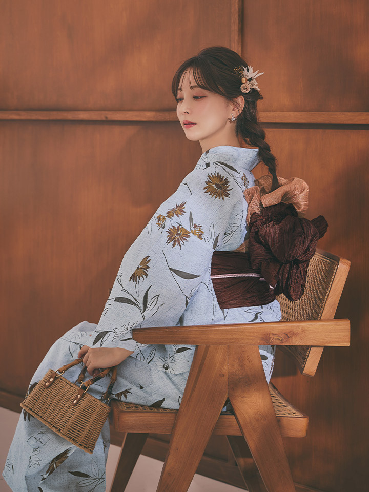 【即日発送】グレー地×マーガレット浴衣【浴衣3点セット 浴衣/帯/下駄】[FB02] [Y-8003-kj-GY-F-26MR-260410]
