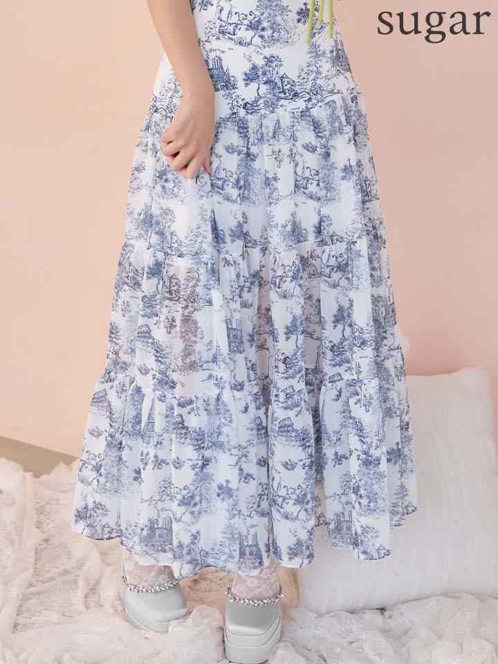 イタリアのリゾート地を思わせる総柄フレアロングドレス♡