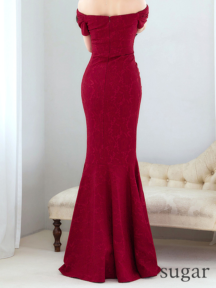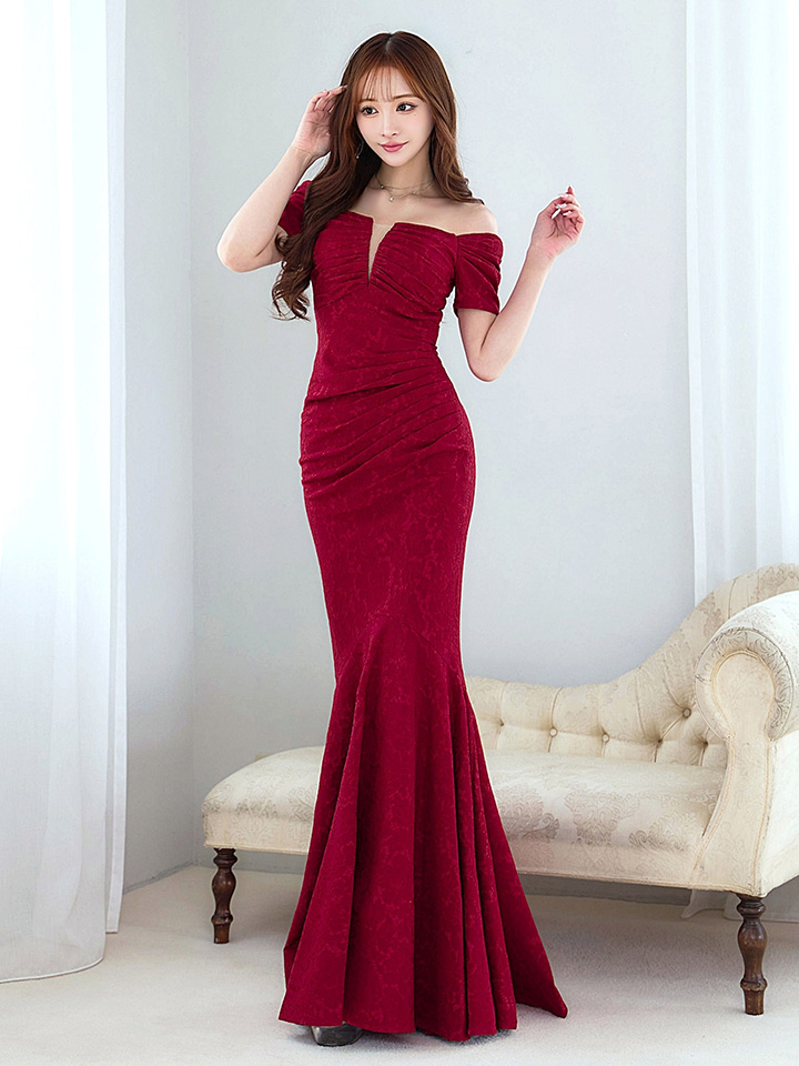 高級感のある花柄織りの生地がフェミニンなマーメイドロングドレス。