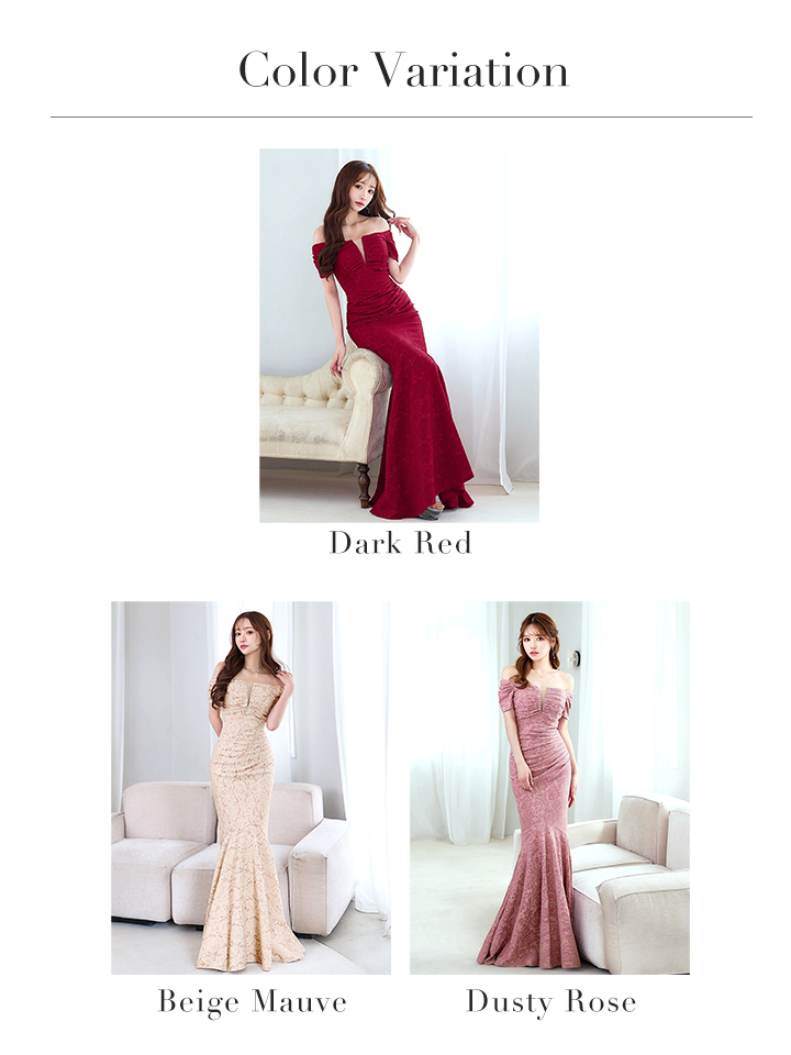 Lサイズあり【UNA VALERIE / ウナヴァレリェ】 花柄/ オフショルダー/ バストシアー/ ギャザー/ タック/ マーメイド/ ロングドレス long[OF05] [V60210L-DKR-S2604]