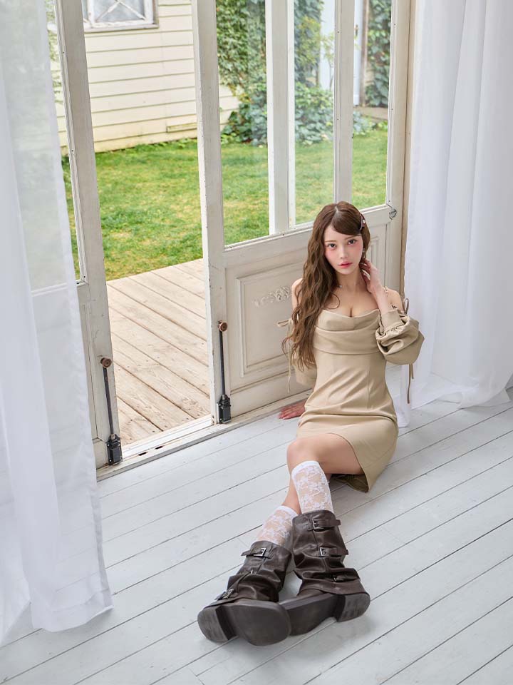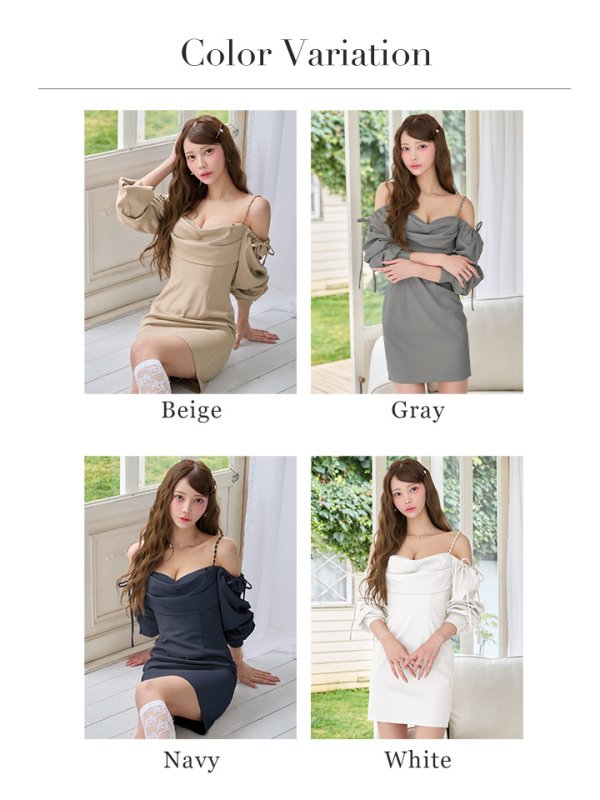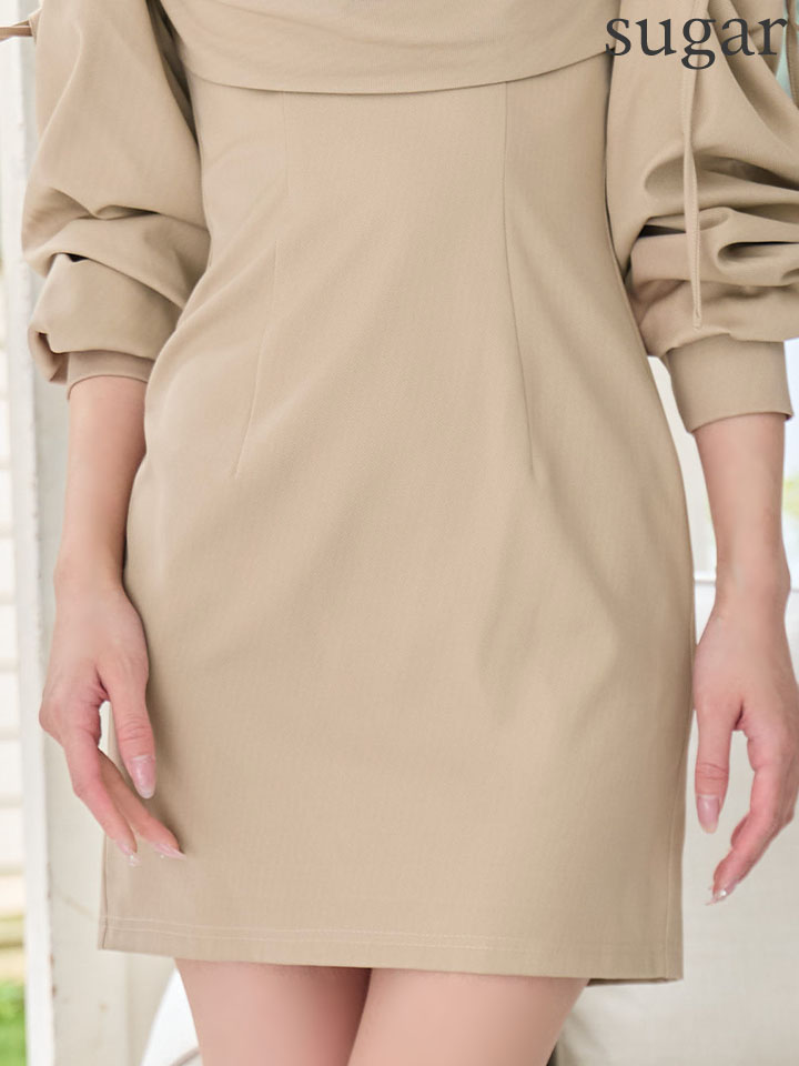 肩を美しく魅せるオフショル×ドレープデザインで、色気と上品さを両立したタイトミニドレス♡