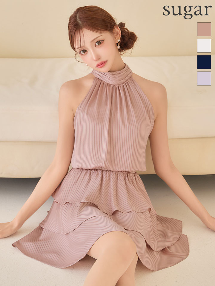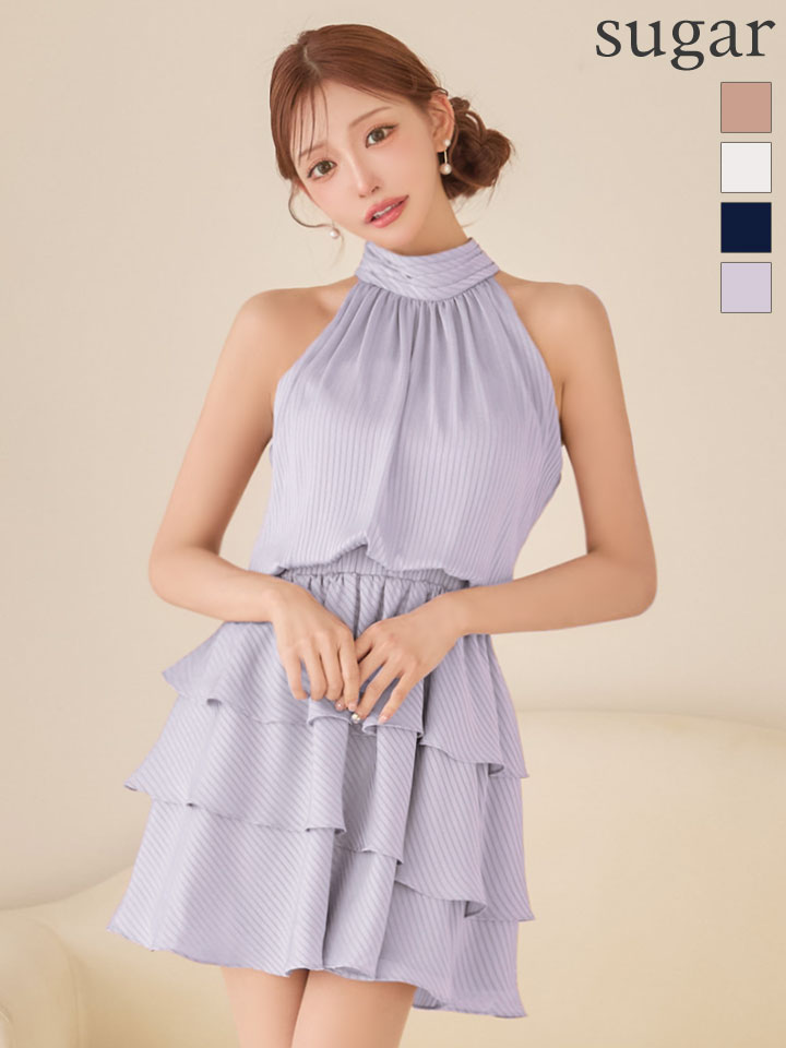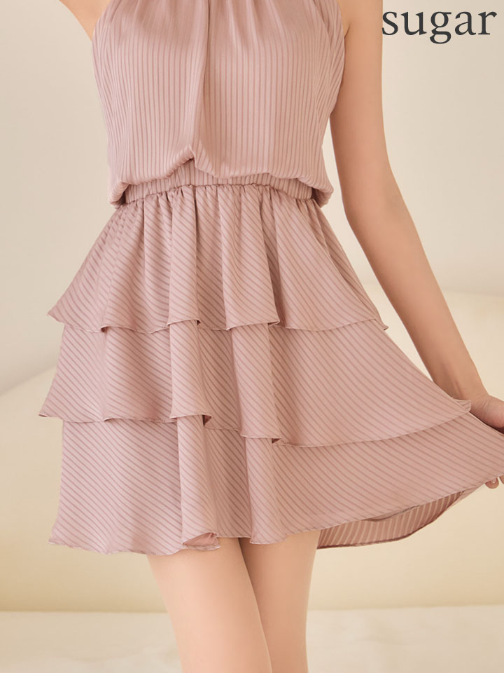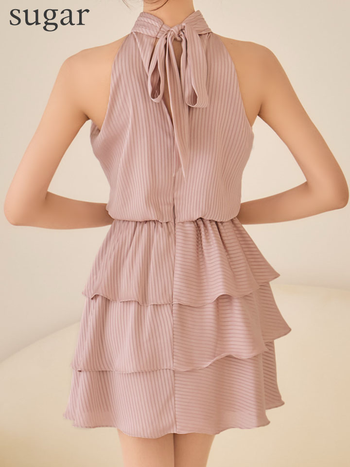 sugarオリジナルカラー・XSサイズあり【IRMA/イルマ】ストライプ/ ティアード/ アメリカンスリーブ/ バックリボン/ ハイネック/ フリル/ シフォン/ フレア/ ミニドレス/ キャバドレス[OF2A] [61076-IR-P-S260413]
