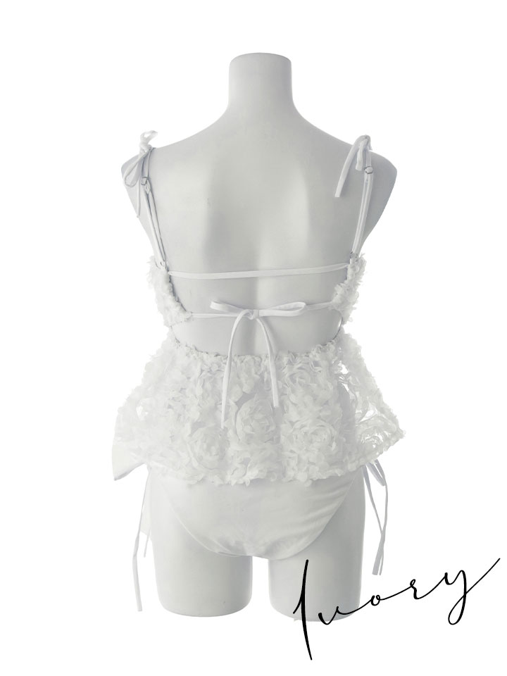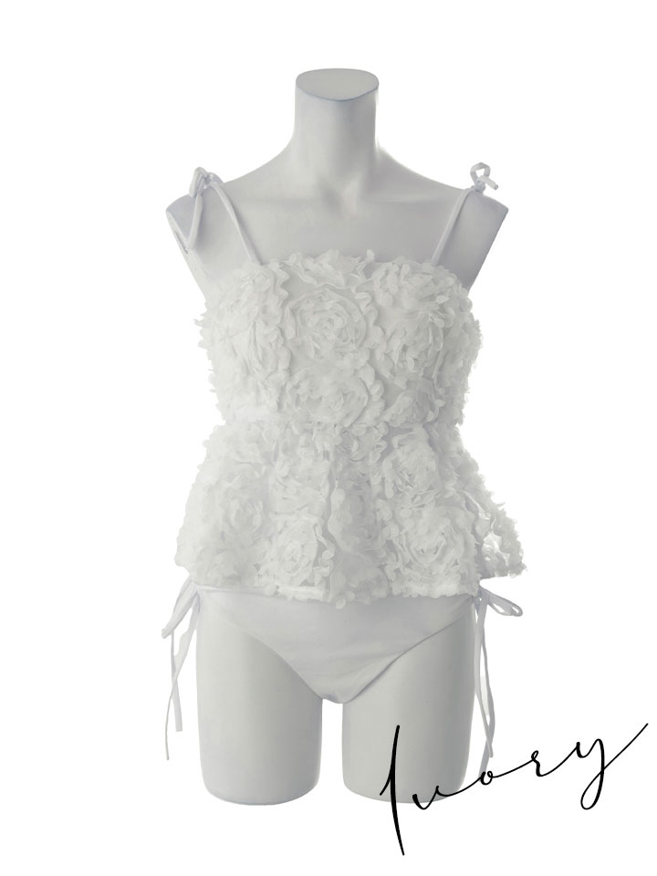 花 ペプラムビキニ 胸隠し ホワイト アイボリー