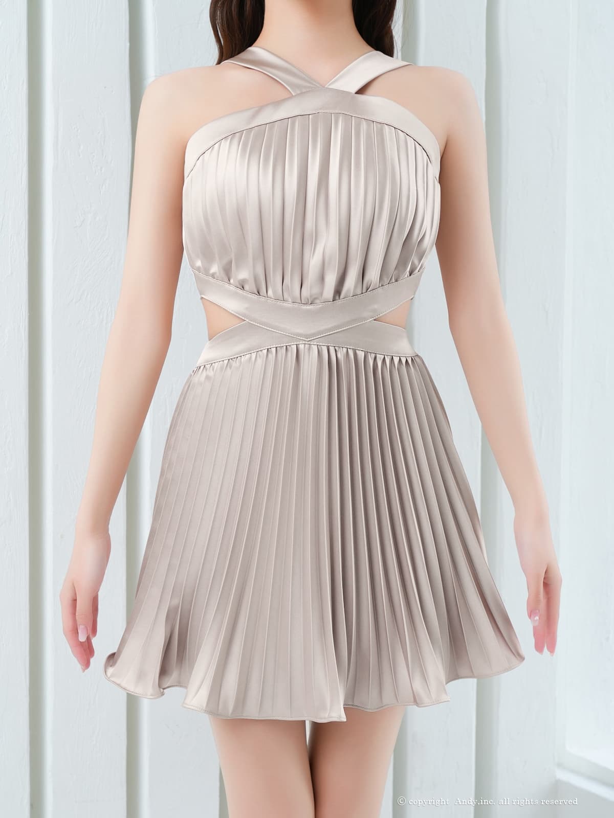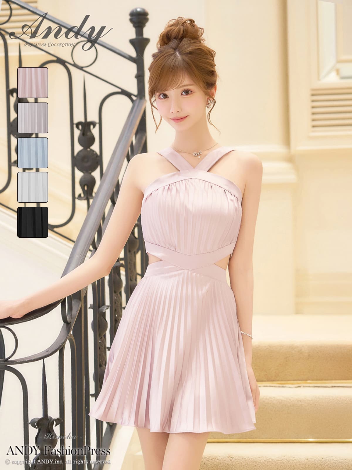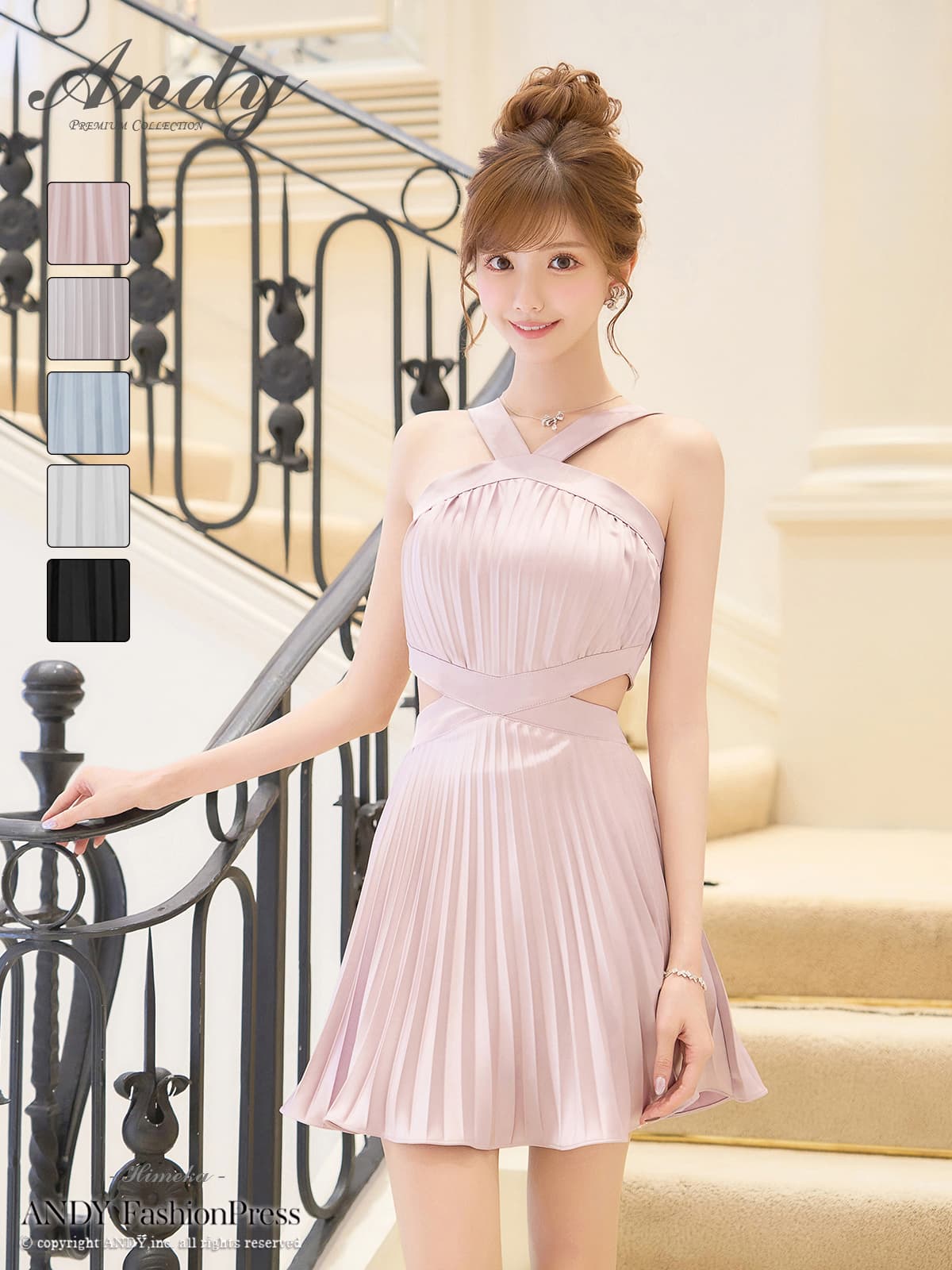 XSサイズあり【ANDY/アンディ】ノースリーブ/ サテン/ ワンカラー/ プリーツ/ サイドカット/ フレア/ ミニドレス/ キャバドレス[OF05] [ON3064-P-2604]