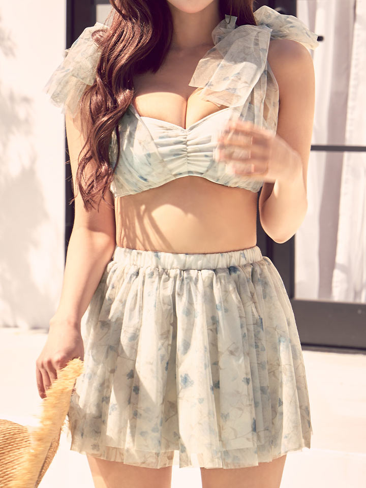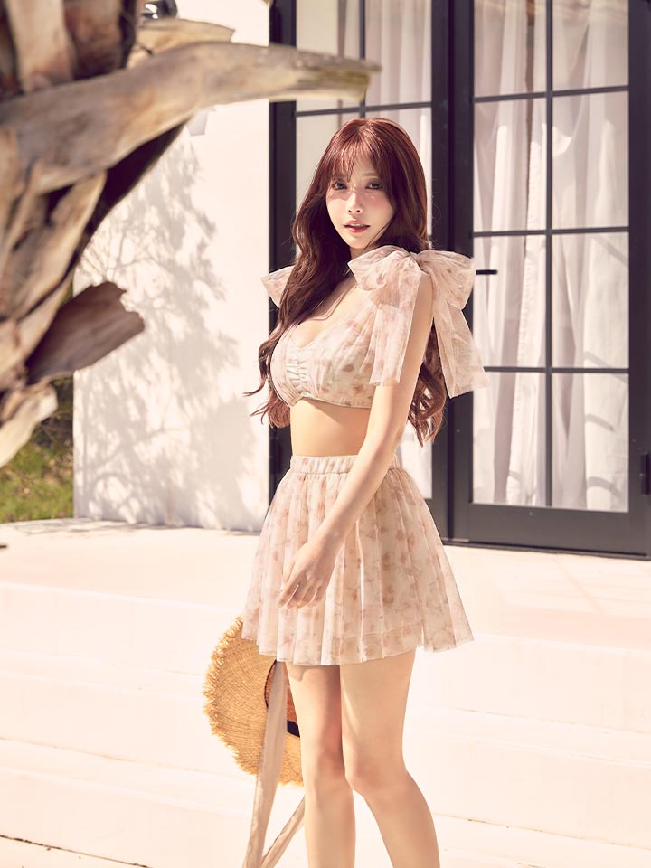 【ビキニ】【水着】フラワーモチーフシアーリボンビキニ 3点セット [FB01]【予約 / 6月上旬発送予定】 [M303dzjq-P-26MY-260414]