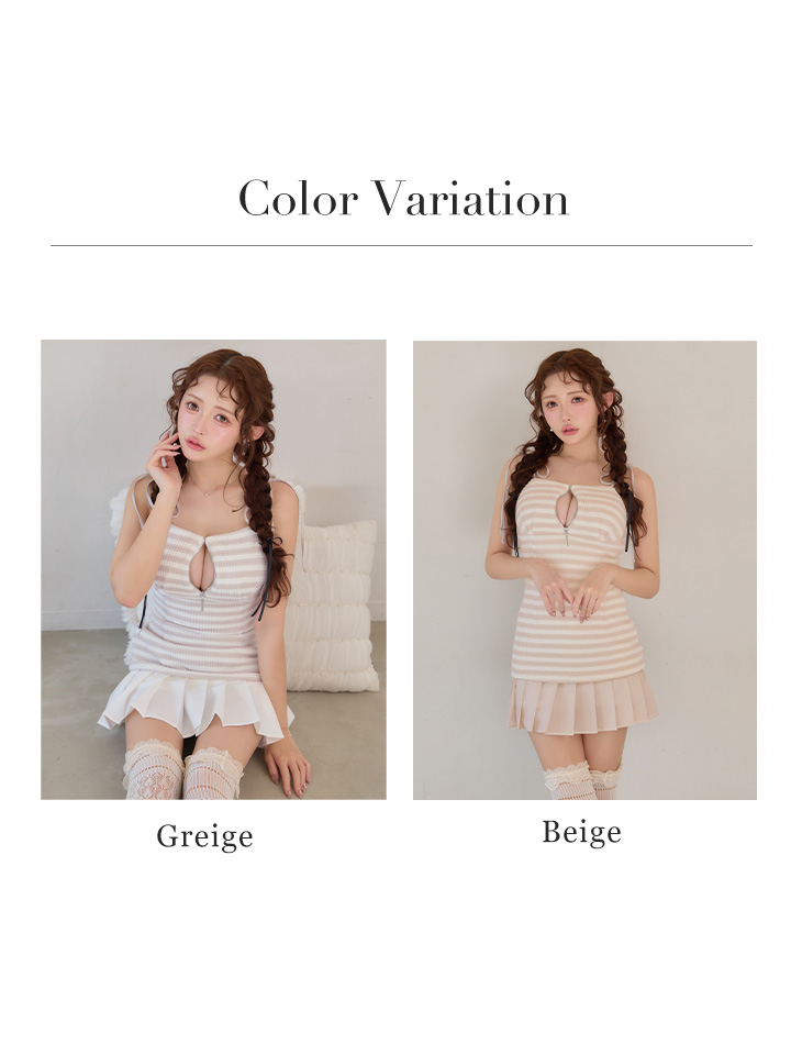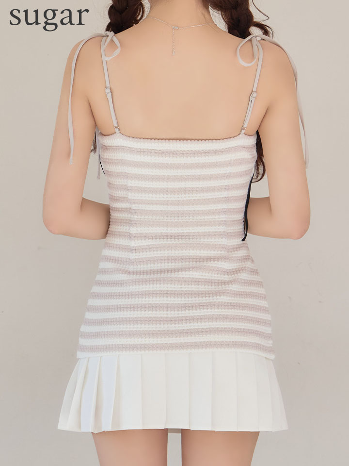 XSサイズあり【ROBE de FLEURS/ローブドフルール】ニット/ ボーダー/ ショルダーリボン/ プリーツ/ バイカラー/ フレア/ ミニドレス/ キャバドレス[OF08] [FM4661-BE-S260414]