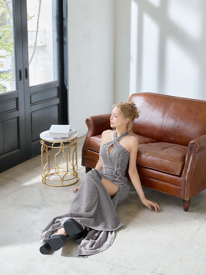 大胆なスリットとバックデザインが色気と上品さを両立させた特別な一着。
