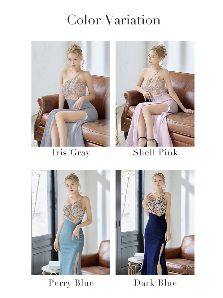 【IRMA/イルマ】マーメイド/ スパンコール/ ビジュー/ ラメニット/ 刺?/ ワンショルダー/ スリット/ シアー/ ハイウエスト/ スピンドル/ ロングドレス/ キャバドレス long[OF2A] [61086-IR-DKBL-S260415]