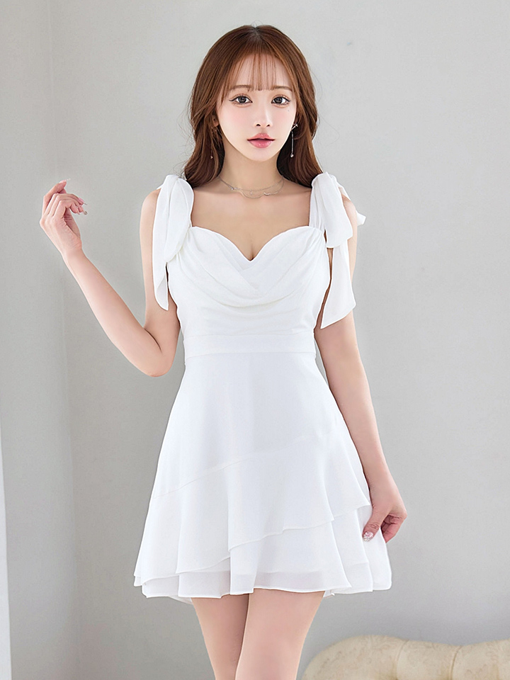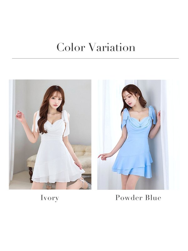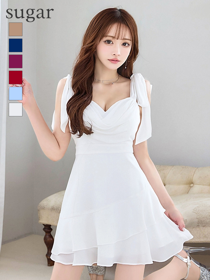 XS-Lサイズあり【Donia Quinn / ドニアクイーン】 ドレープ/ ワンカラー/ ショルダーリボン/ ノースリーブ/ フリル/ フレア/ ワンピース/ ミニドレス/ キャバドレス[OF05] [Q60234Y-IV-S2604]