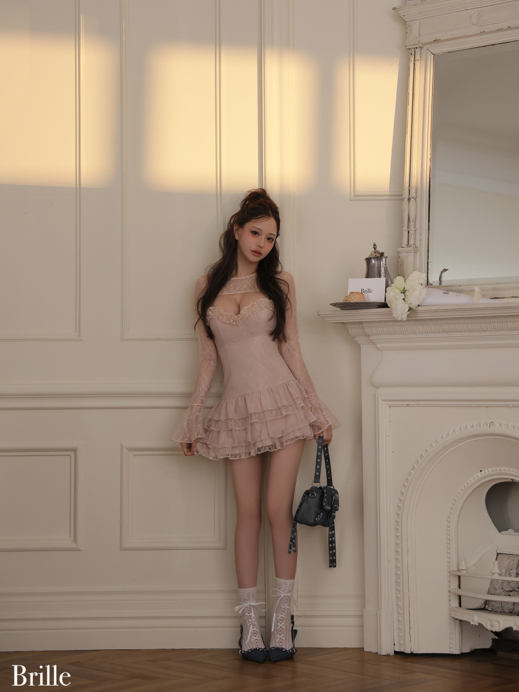 【予約商品/4月下旬発送予定】XSサイズあり【brille/ブリエ】【ROBE de FLEURS/ローブドフルール】Petale de brille mini dress/ 袖付き/ レース/ シフォン/ チュール/ フリル/ フレア/ ミニドレス/ キャバドレス[OF8] [BRILLE4161-IV-2604]