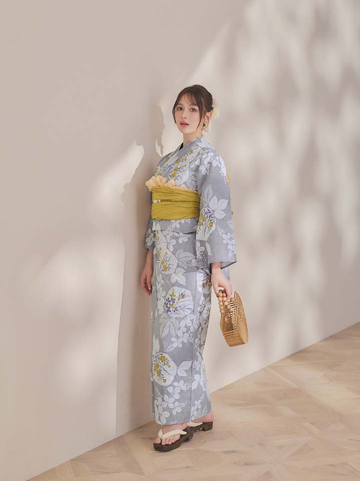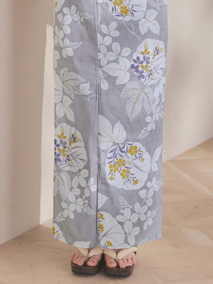 【即日発送】グレー×フラワー浴衣【浴衣3点セット 浴衣/帯/下駄】[OF04] [Y-8086-ok-GY-F-26IE-260417]
