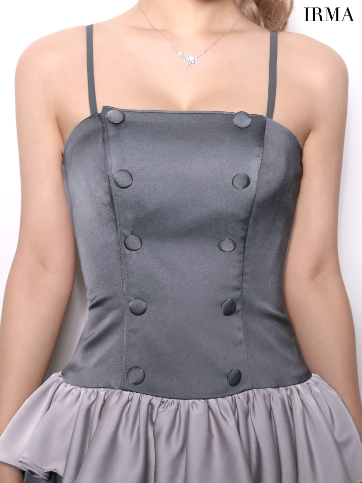 XSサイズあり【IRMA/イルマ】バイカラー/ アシメ/ 無地/ サテン/ ティアード/ 2段フリル/ ノースリーブ/ キャミソール/ フリル/ フレア/ ミニドレス/ キャバドレス[OF2A] [61072-IR-Greige-S260417]
