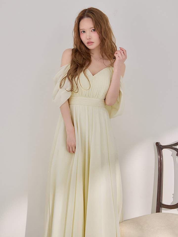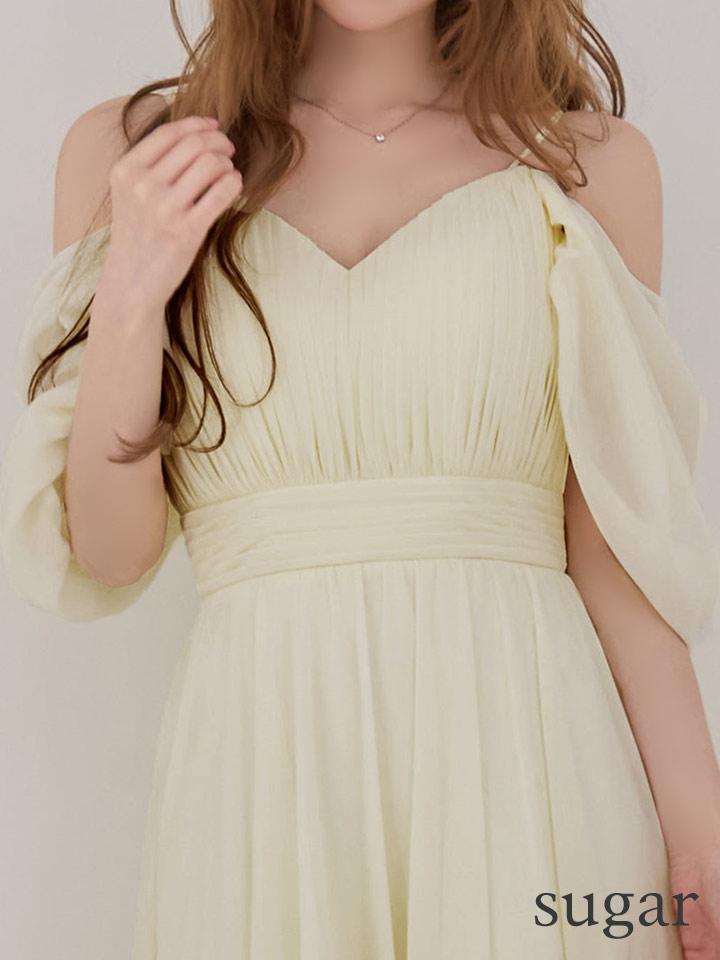 マキシ丈のシフォンが優雅に揺れるミディアムドレス♡