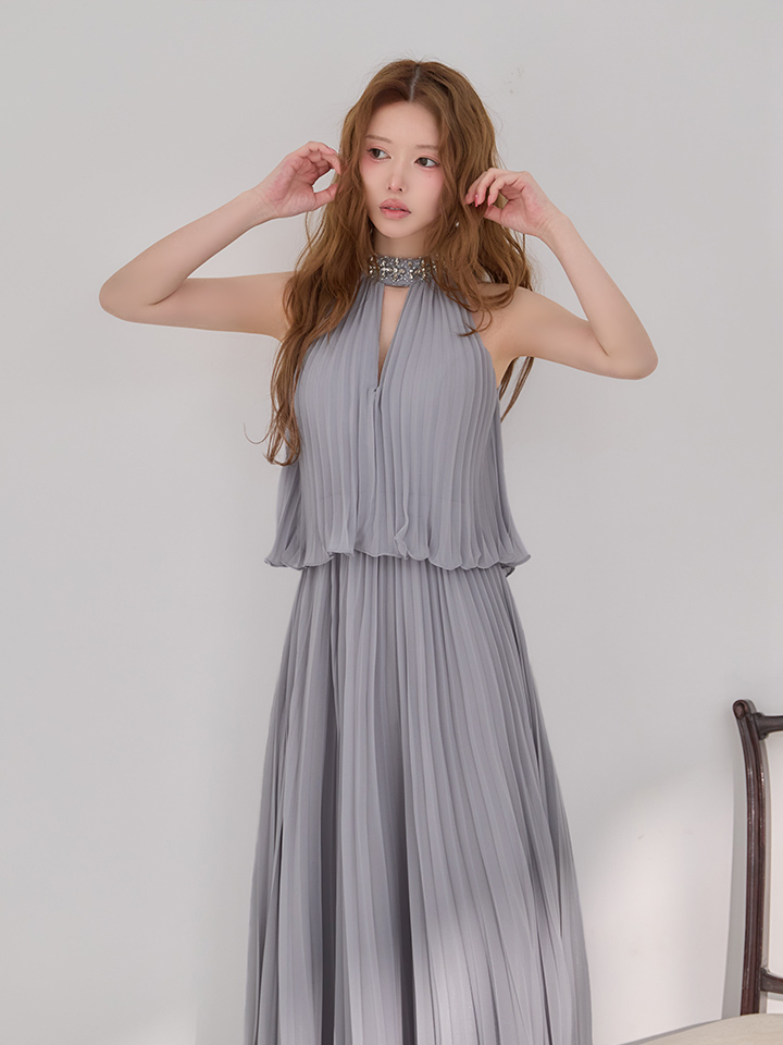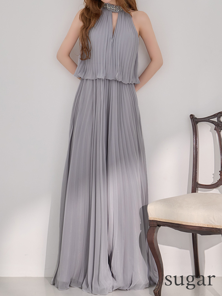 繊細なプリーツが美しく揺れる、エレガントなドレス