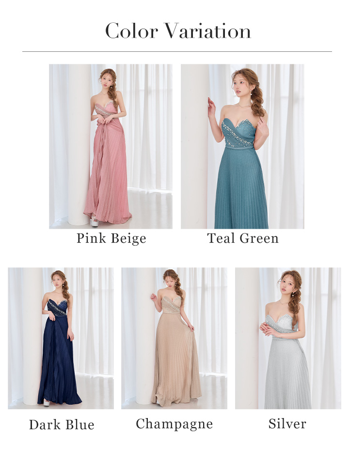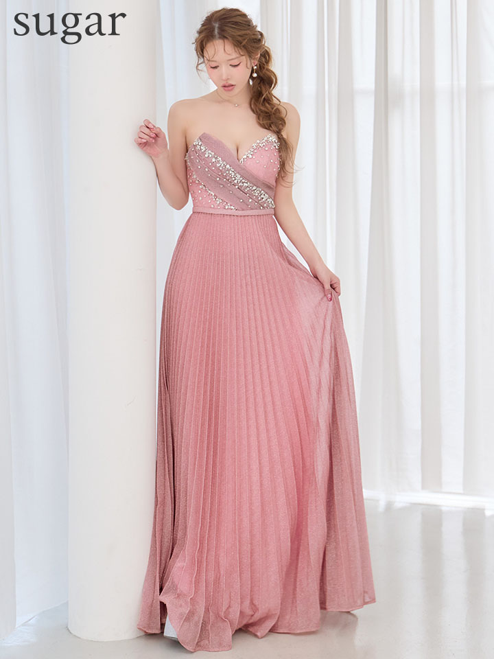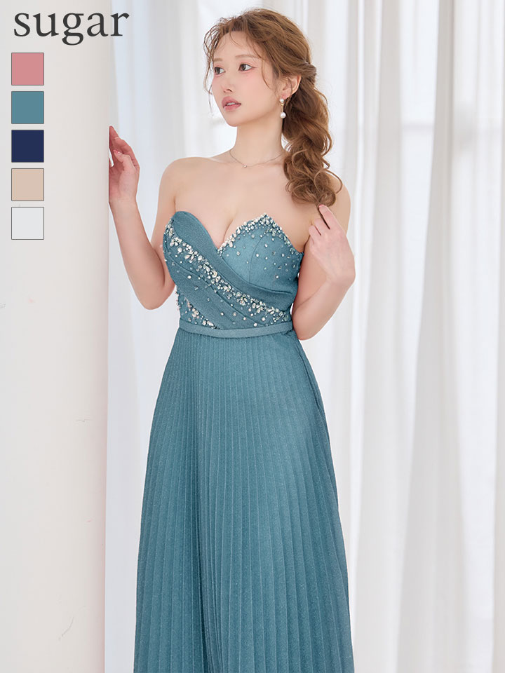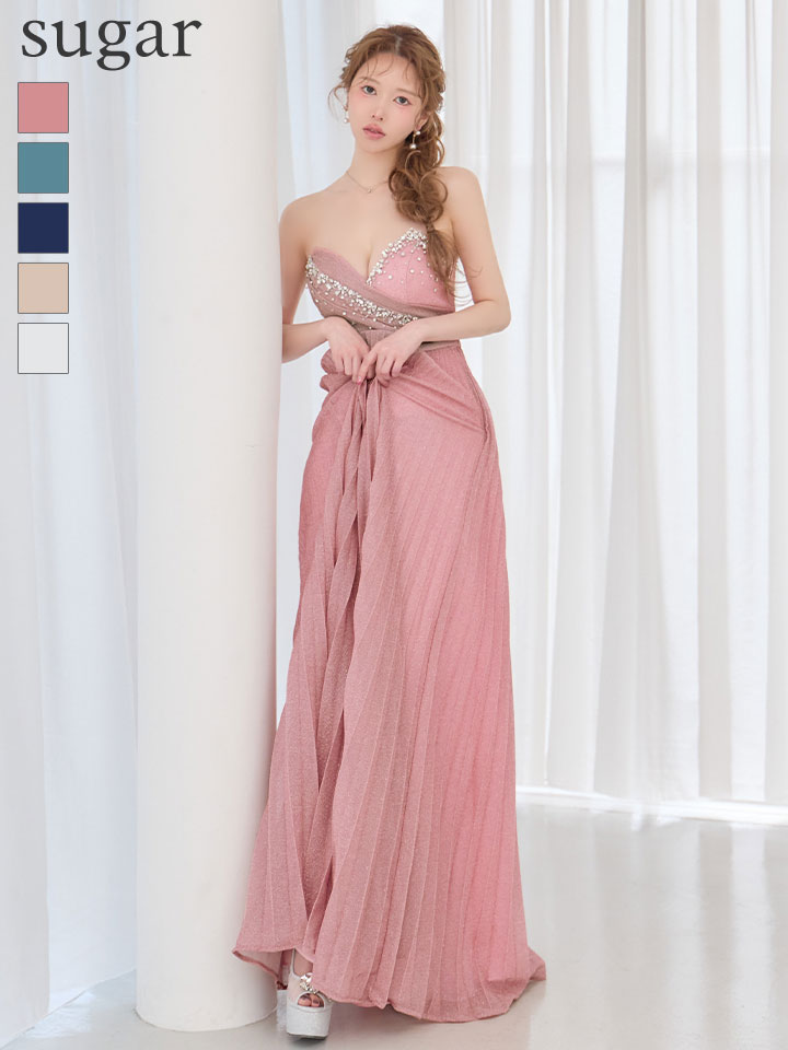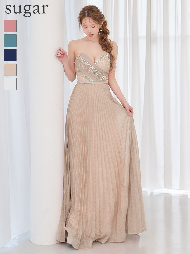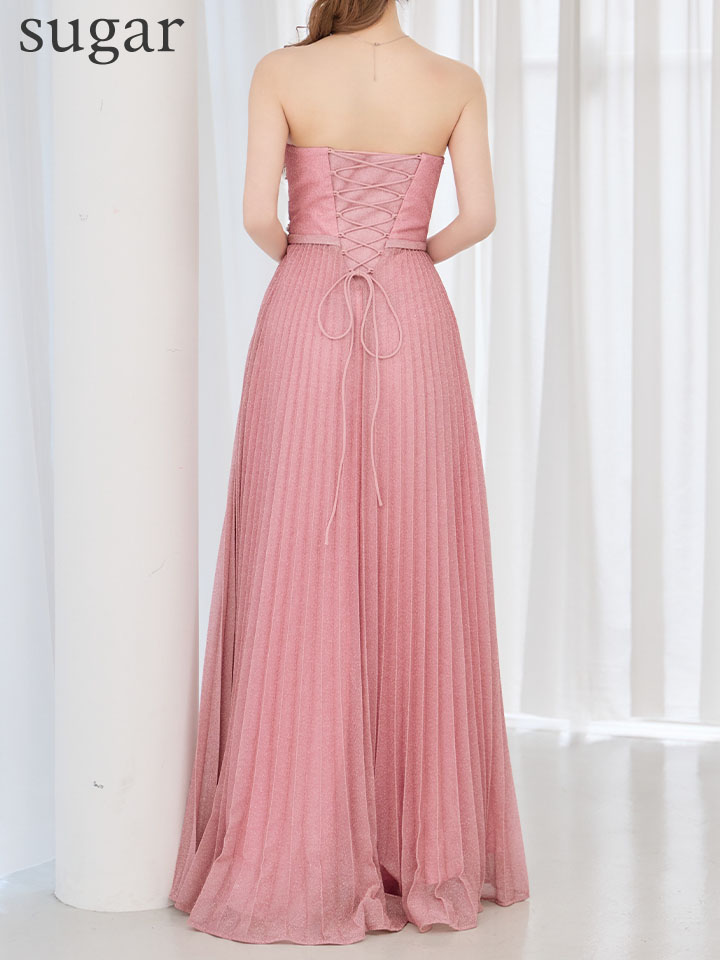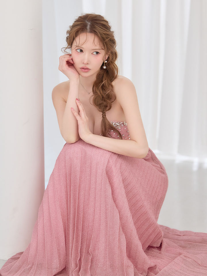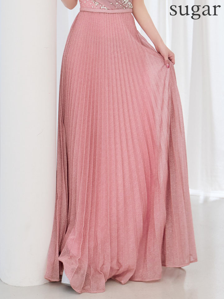 【IRMA/イルマ】ビジュー/ ハイウエスト/ ベア/ リボン/ ストレッチ/ タック/ ラメニット/ プリーツ/ ワンピース/ フレア/ ロングドレス/ キャバドレス long[OF2A] [61089-IR-CHP-S260418]