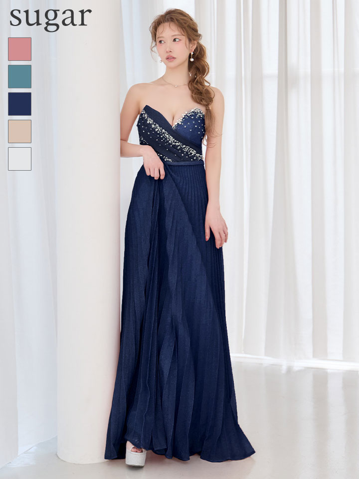タックのロングスカートxハイウエストがボディラインを美しく魅せるビジュードレス♡