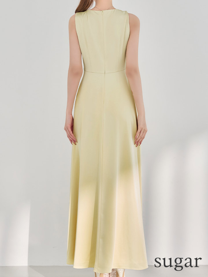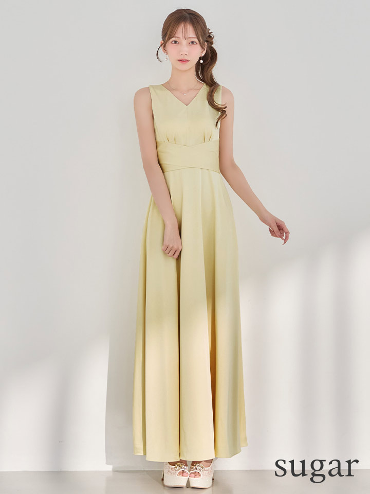 XS-Lサイズあり 【GINZA COUTURE/銀座クチュール】シンプル/ サテン/ Vネック/ ノースリーブ/ウエストマーク/ Aライン/ フレア/ ロングドレス/ キャバドレスlong[OF2] [LKC25182-Y-S260418]