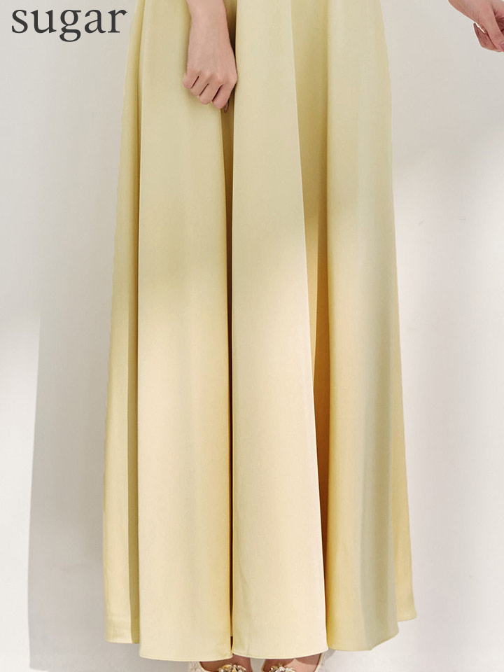 Aラインが女性らしく美しいシルエットを引き出し、サラッとしたサテン生地で着心地も◎