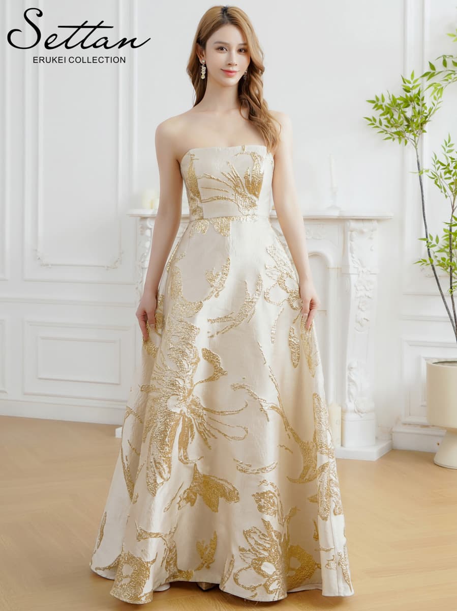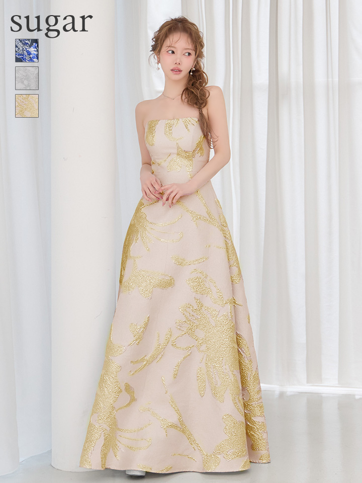 XS-Lサイズあり【SETTAN/セッタン】ベア/ 花柄/ ラメ/ ジャガード/ ノースリーブ/ スピンドル/ フレア/ Aライン/ ワンピース/ ロングドレス / キャバドレス long[OF2] [LKS25380-BExGD-S260418]