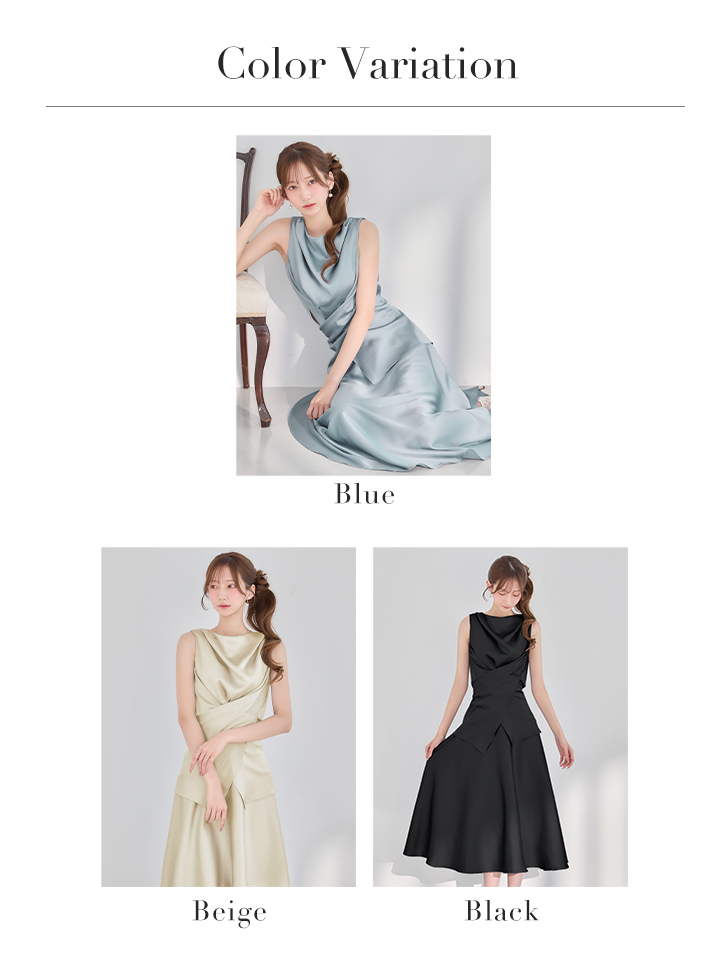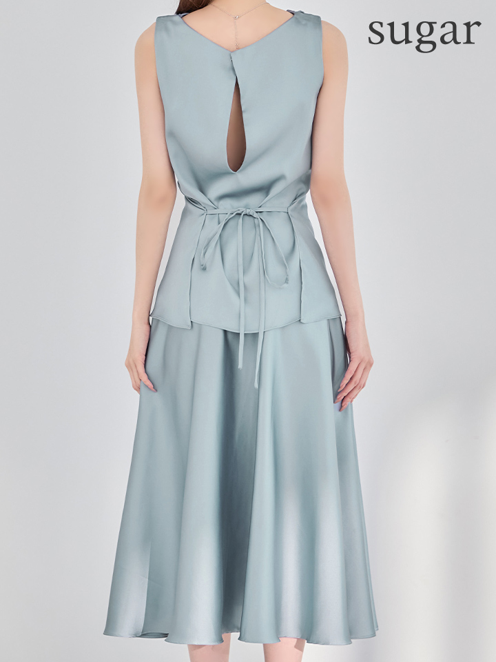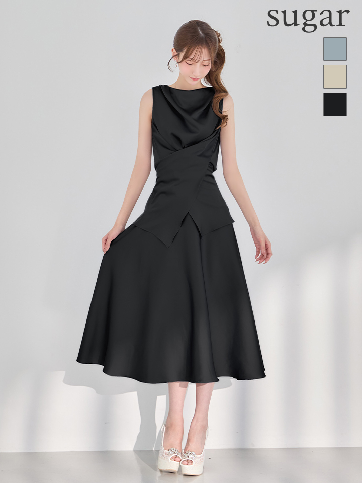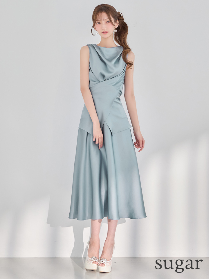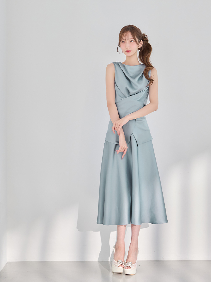 上品な光沢感が魅力のサテン素材を使用した、洗練されたセパレートドレス。