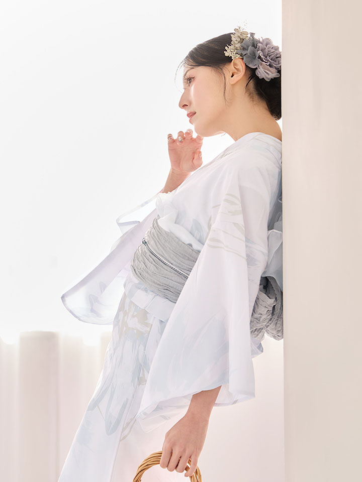 送料無料!【即日発送】ニュアンスフラワーホワイト浴衣【浴衣3点セット 浴衣/帯/下駄】[OF04] [Y-8068-sb-dzc-W-F-26MU-260420]