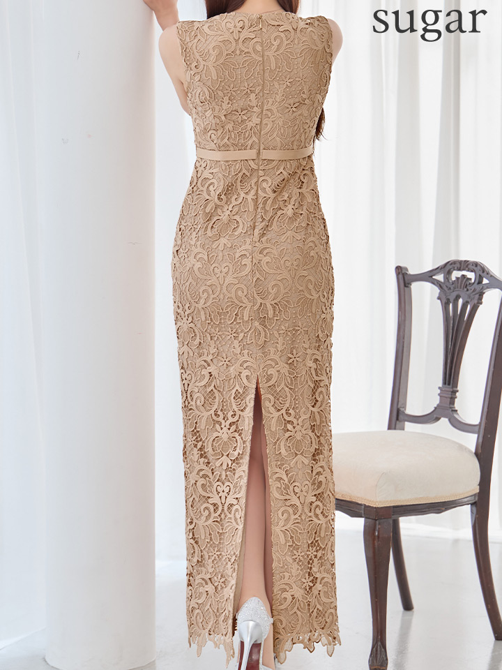 XS-Lサイズあり【SETTAN/セッタン】総レース/ クラシカル柄/ 刺繍/ ノースリーブ/ ボートネック/ バックスリット/ タイト/ ロングドレス/ キャバドレス long[OF2]【一部予約商品/6月上旬発送予定】 [LKS25228-BE-S2604]