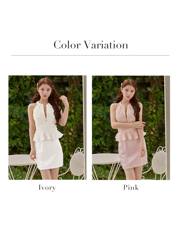 XSサイズあり【an/アン】ホルターネック/ プチハイネック/ バストジップ/ リボン/ Aライン/ ペプラム/ フリル/ タイト/ ミニドレス/ キャバドレス[OF05] [AOC4104-P-S260421]